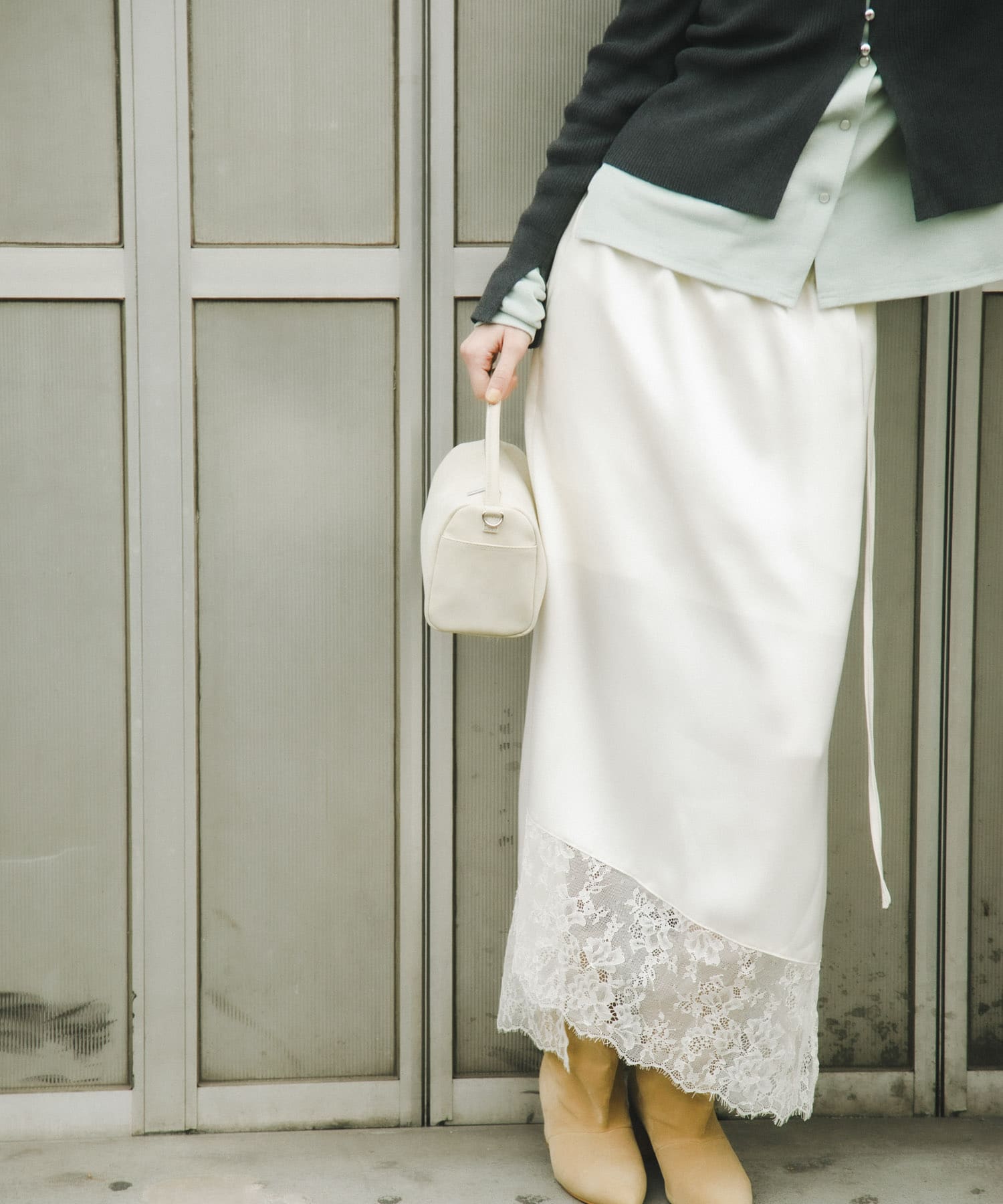 レーススカートはペチコート付きなので1枚で着るもよし〇レイヤードスタイルを楽しむのもよしです^_−☆