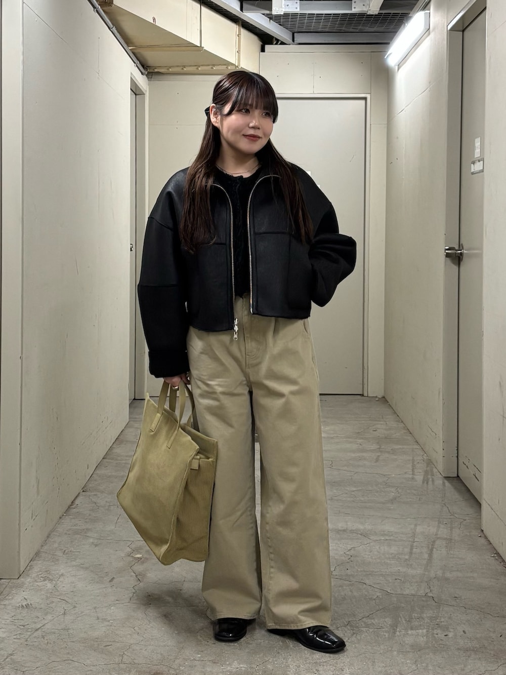 着てみた感じ、ショート丈ですが骨格ストレートの私の上半身が大きく見えることもなくスッキリめに着ていただけます!