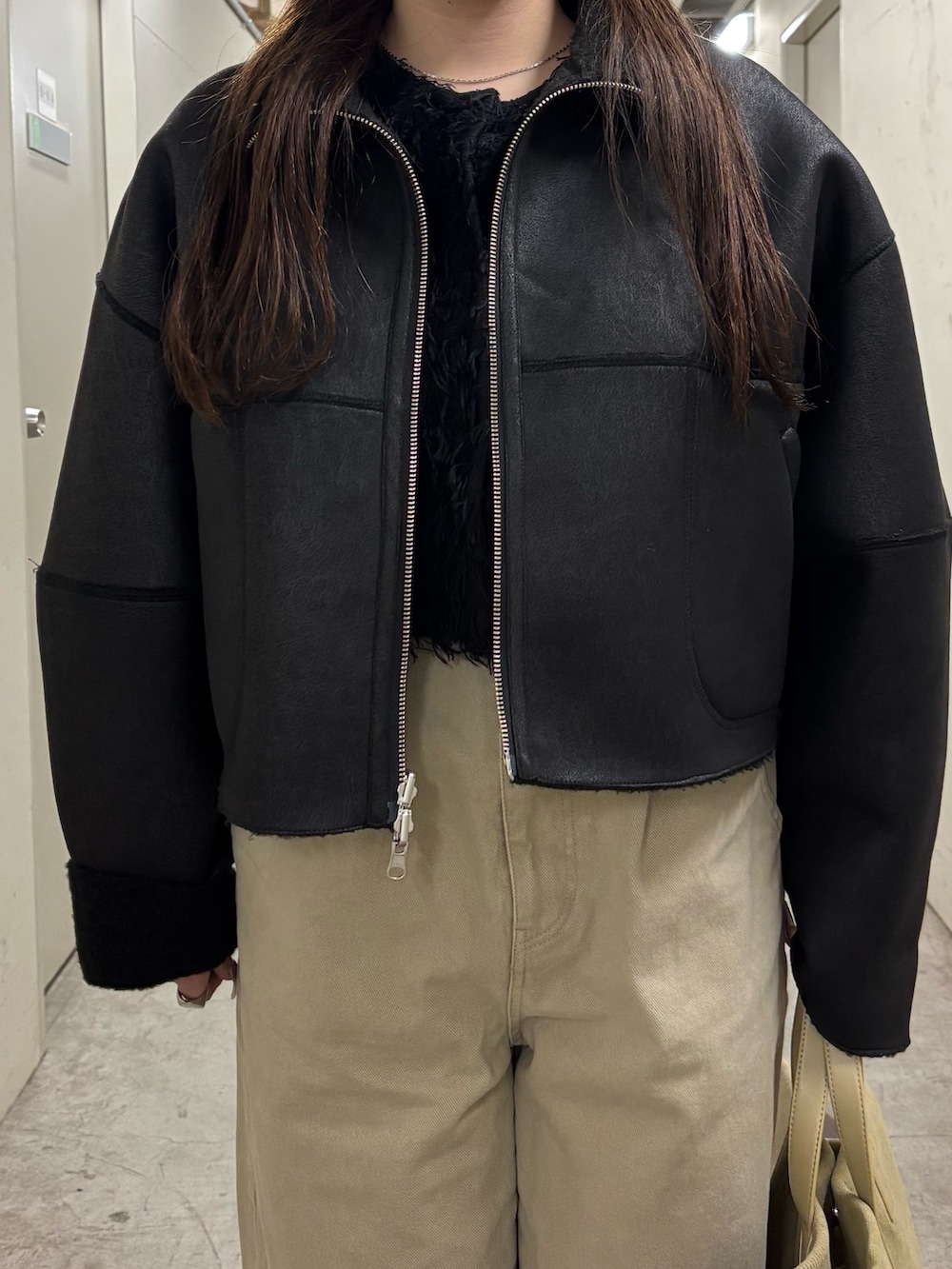 カジュアルなボアとモードなフェイクレザー、2つの生地を使用しており様々なコーディネートで使えるように!フォルム感が可愛いシルエットで着膨れしづらいお作りになっております✊🏻