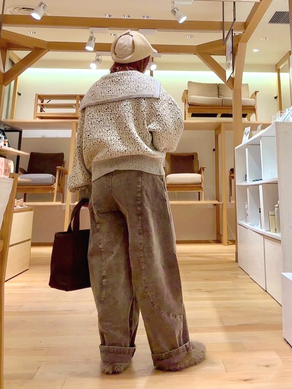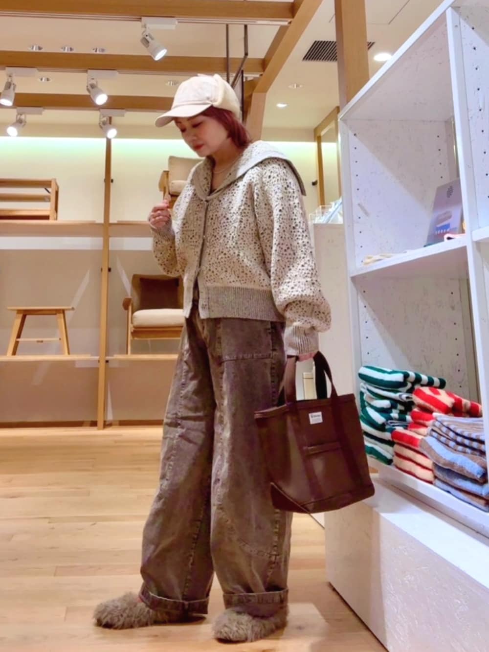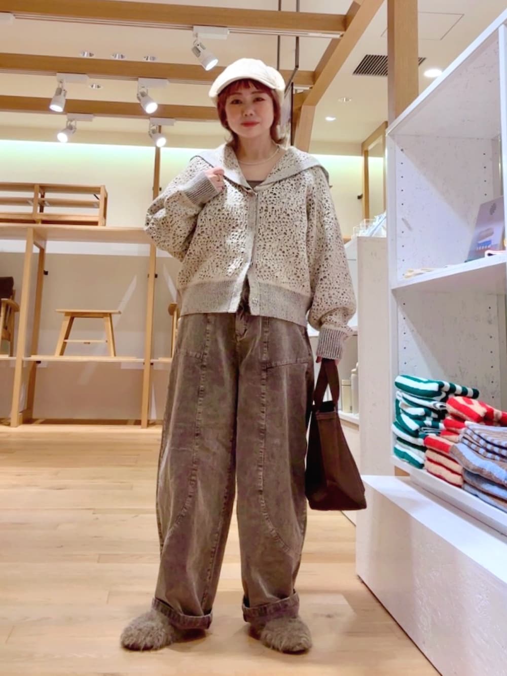 パンツはコーデュロイのカーブパンツです!こちらも三色展開になっており、ヘーゼルとブラウンは擦れたような色味がとてもオシャレでコーデュロイの風合いがよく出ていて可愛いです!ブラックは合わせやすくカーブの形がキレイに強調され小洒落感が出ておすすめです!