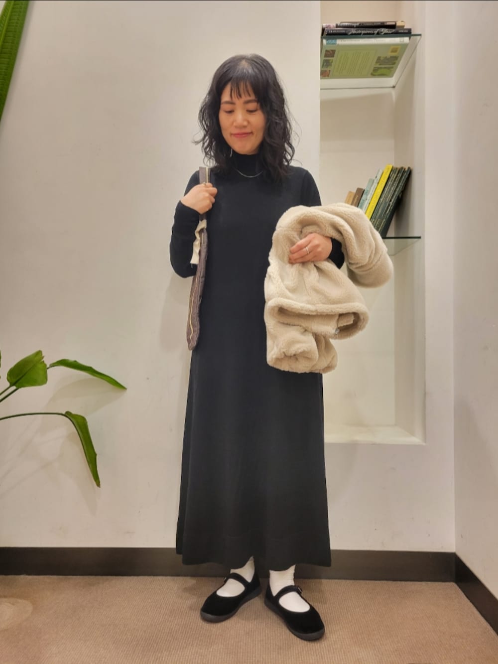 厚手のアイテムも中に着やすいです。