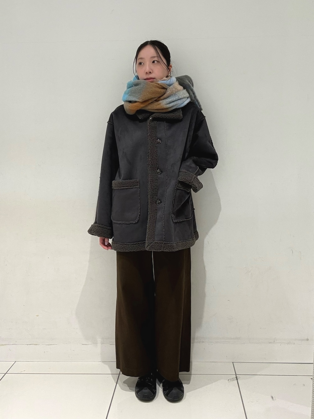 マフラーはカラー系を合わせるとよりポイントになって可愛いです♥️