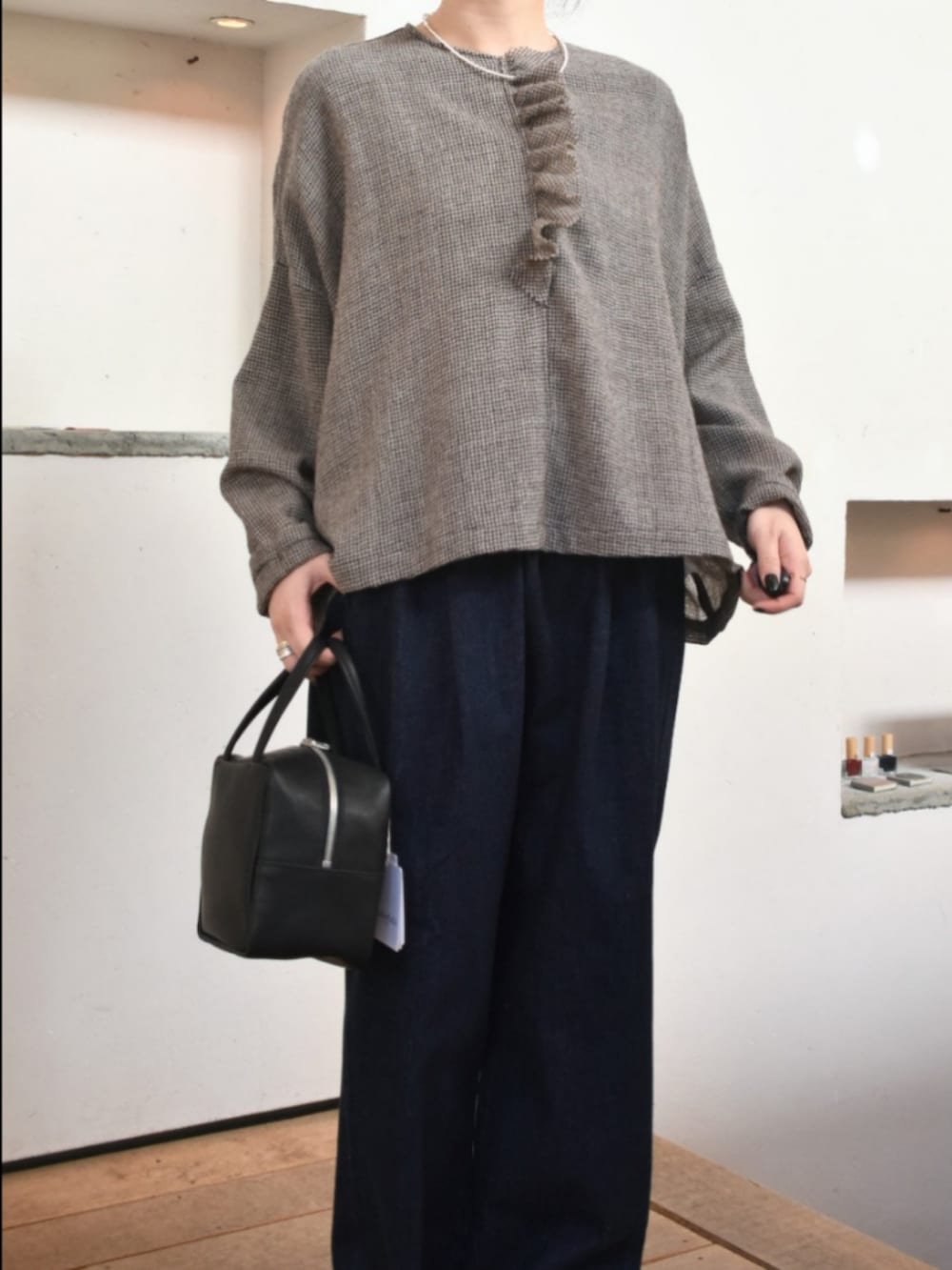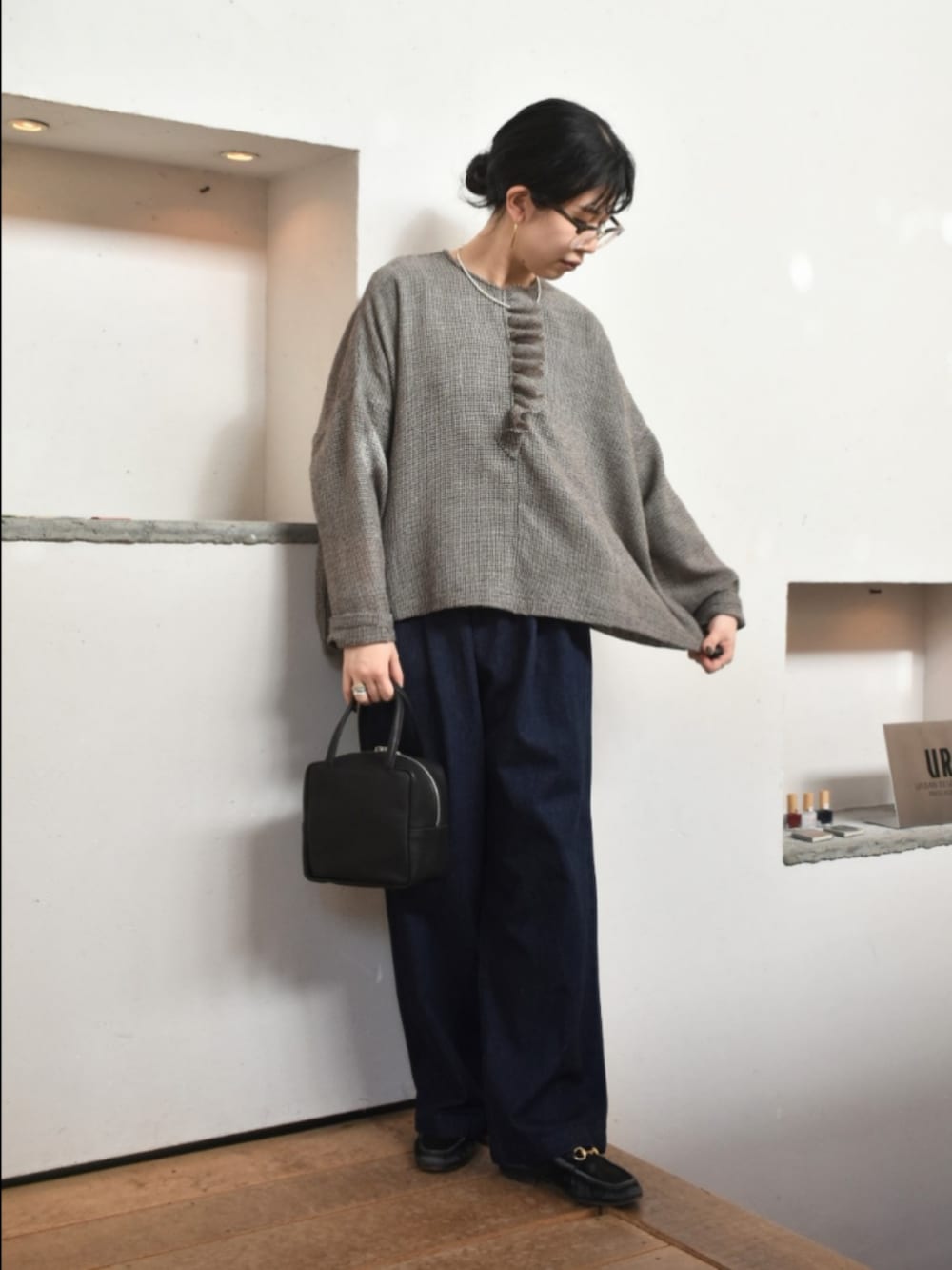 かぐれのアイテムで大人カジュアルなスタイリングを組んでみました。
