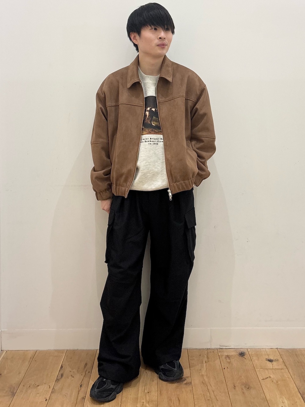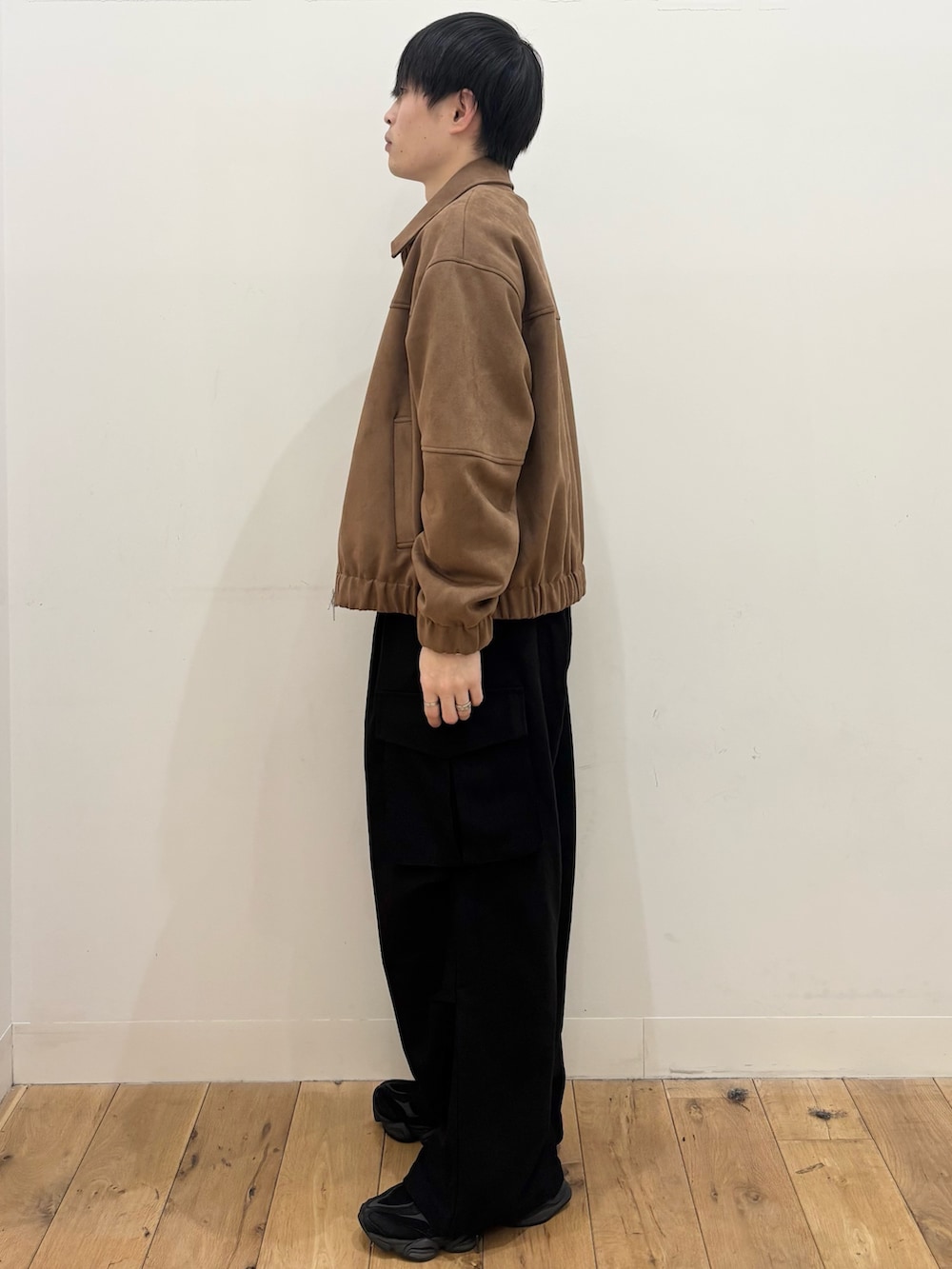 パンツには、緩みもあり、コードを絞って引き締まったスタイリングにもできるカーゴパンツを合わせました!