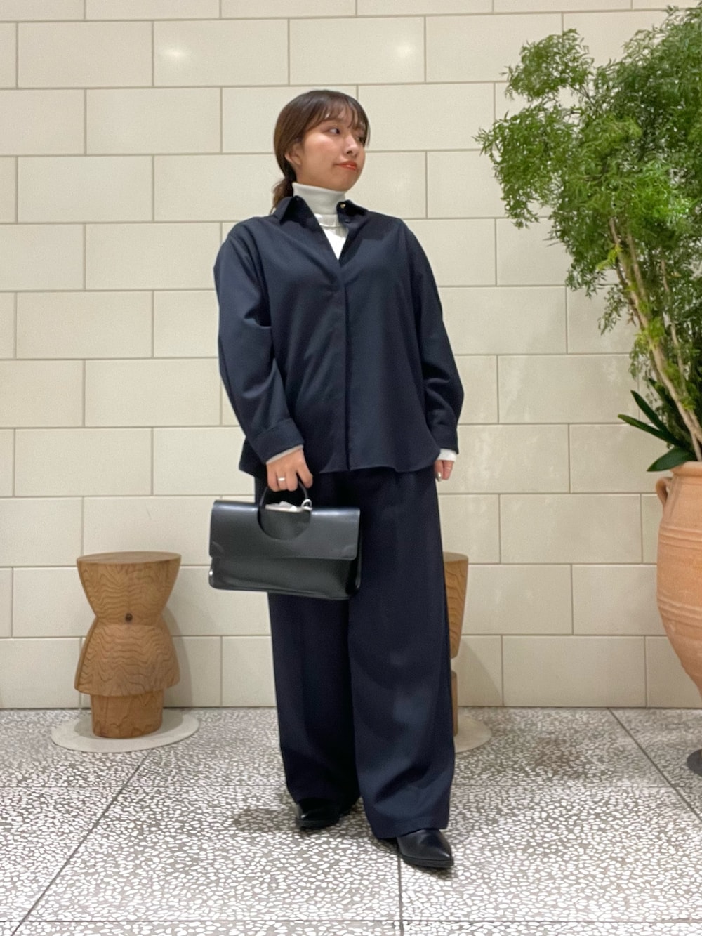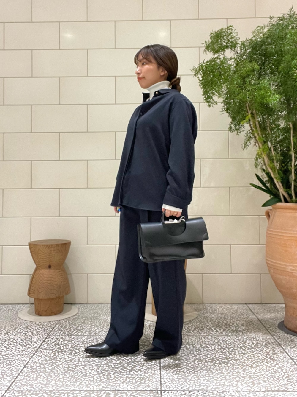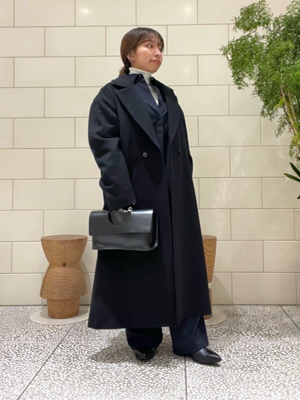 合わせたカシミヤコートも軽くて冠婚葬祭などのシーンでも着回せるシンプルなデザイン♪