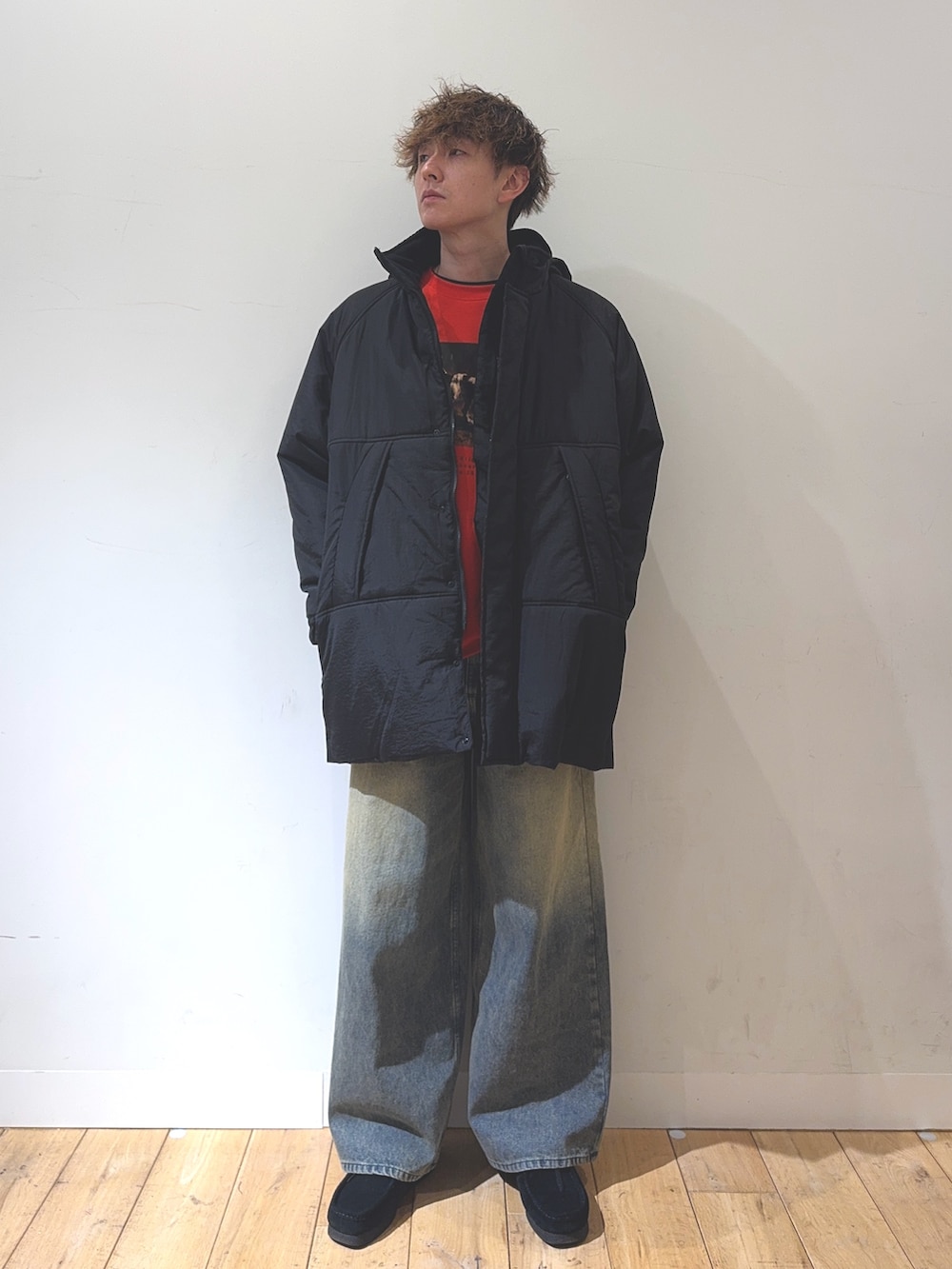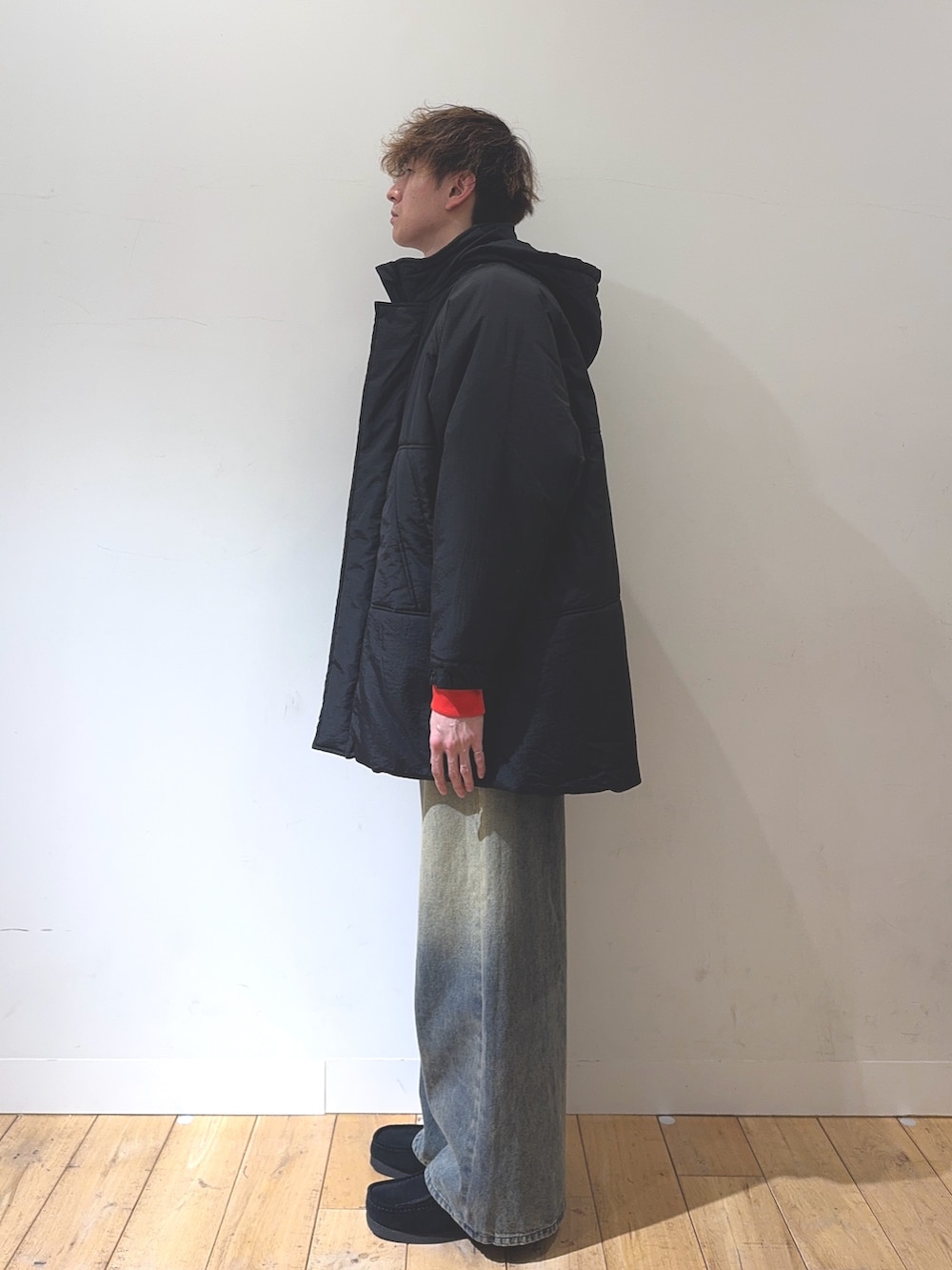 オーバーサイズですが着膨れしない絶妙なバランスのアウターです。撥水素材も急な天候の変化にも対応できるのでお勧めです!