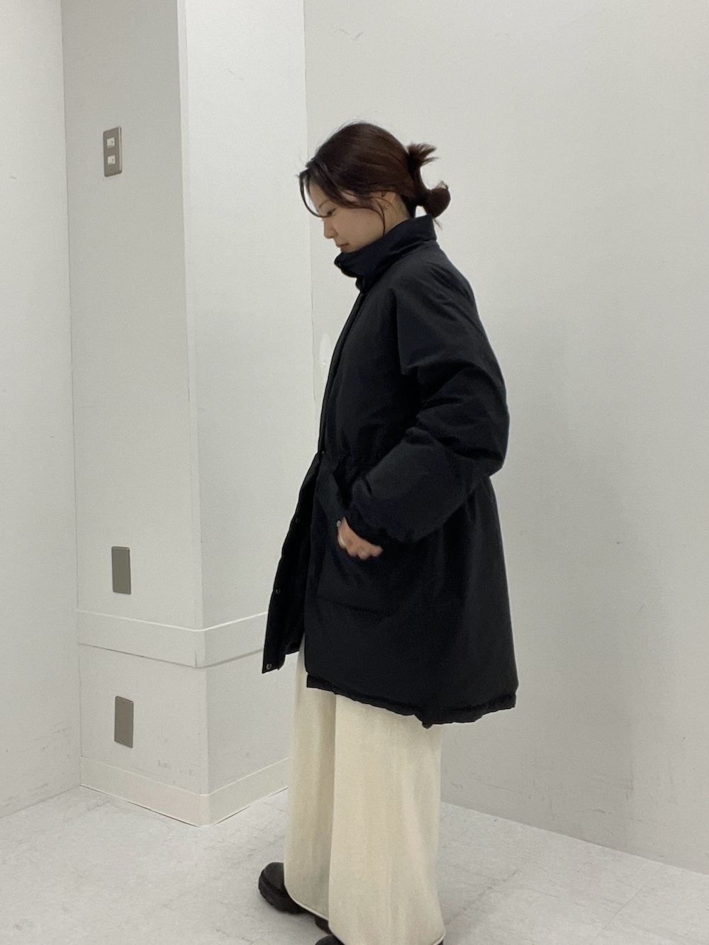 ロング丈ですが、ウエストマークできるので着膨れせず着られてバランスがとりやすいです!