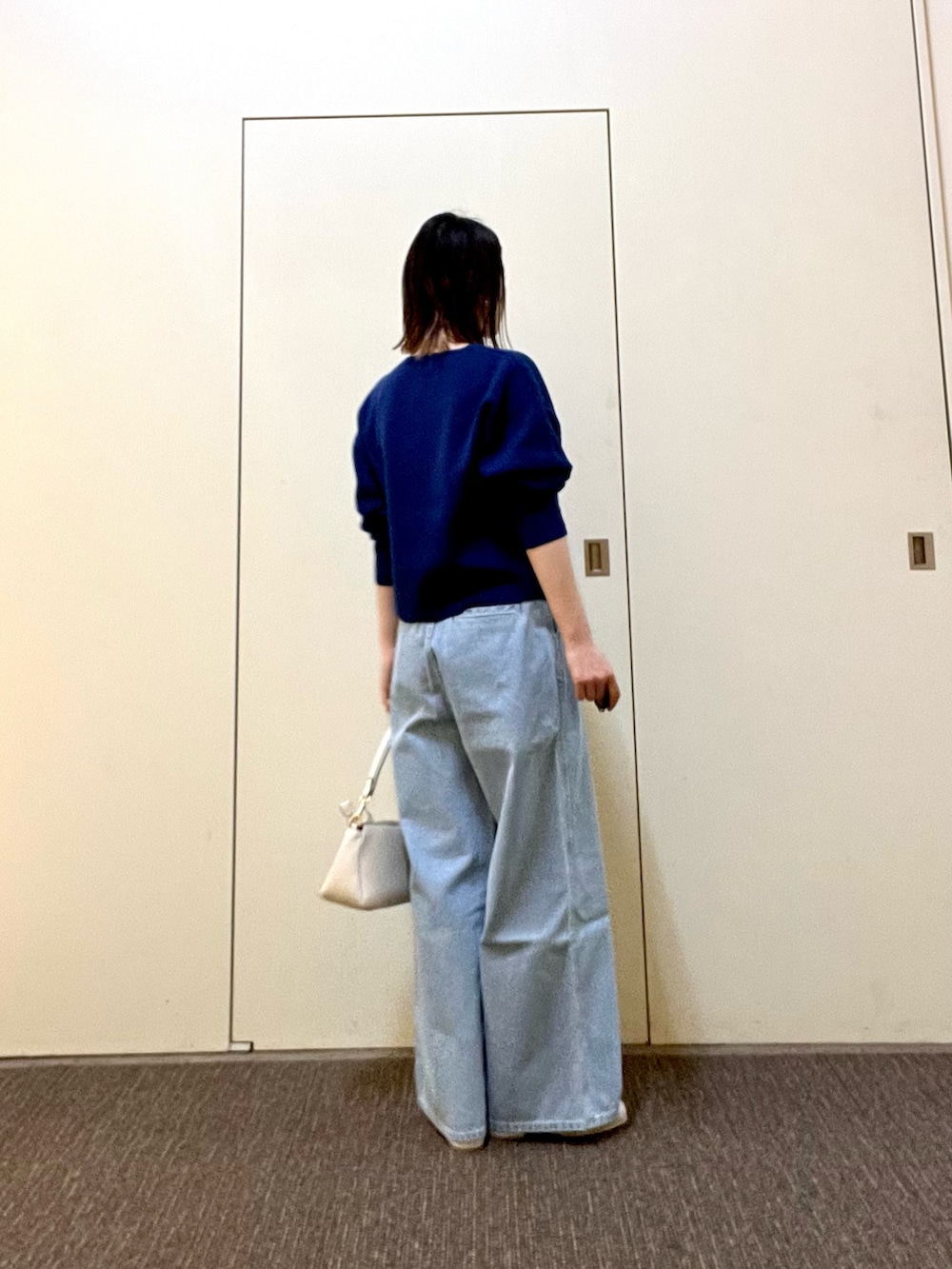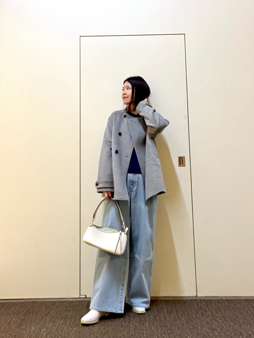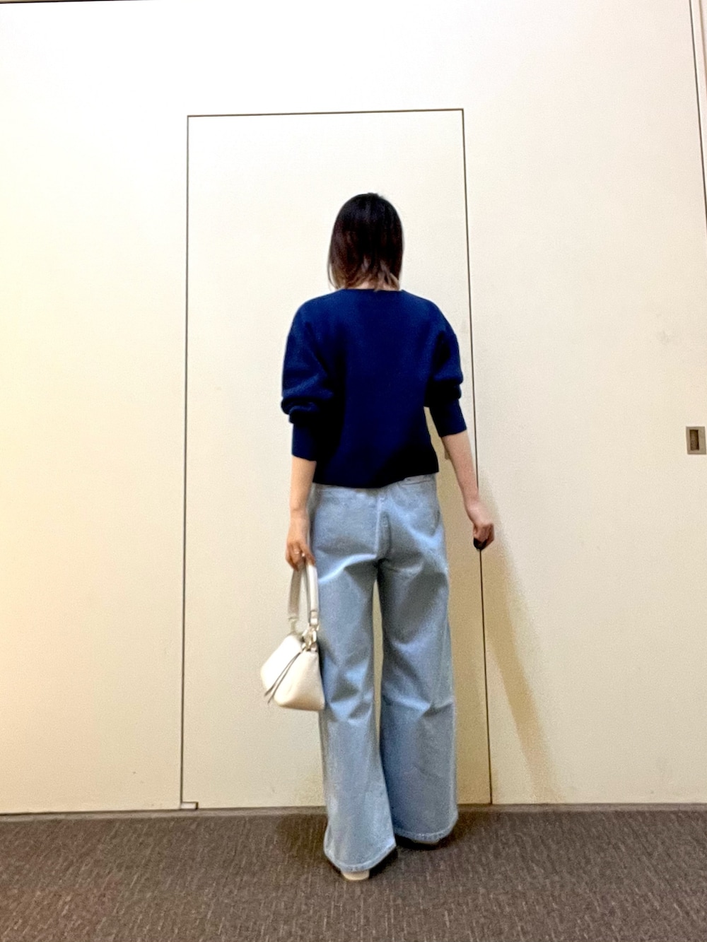 ニットはしっかりとした生地感でチクチク感じることなく着やすいデザイン◎コンパクトな着丈なのでボリュームのあるボトムスで合わせるのがオススメです!シャツやカットソーとレイヤードもしやすいです🧣