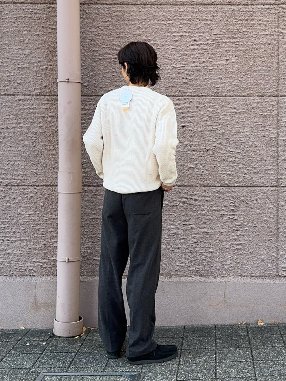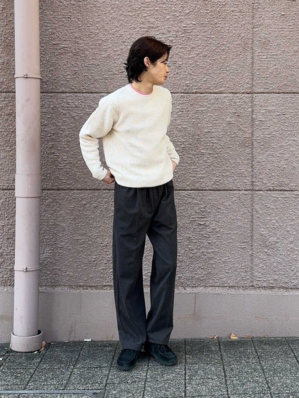 ニットはウール混ですが、チクチクしなくて、とても着やすいです!!スラックスは綺麗なシルエットで履き回しやすいアイテムになってます!