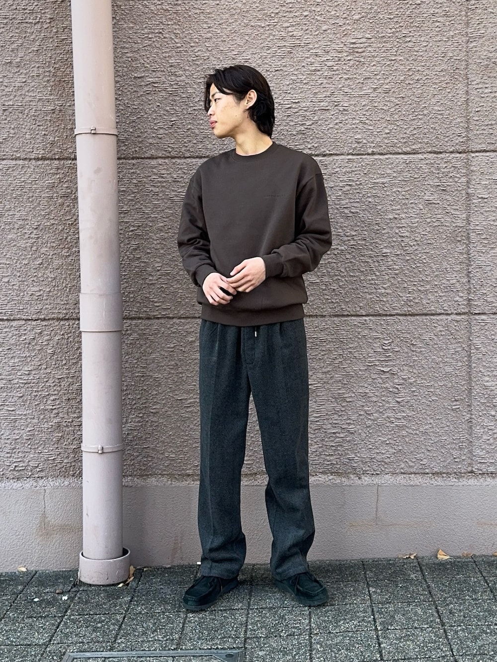 スウェットは発熱機能、裏起毛でとても暖かいスウェットです!今の季節だとジャケットのインナーとしてとてもおすすめです!暖かくなれば一枚でも着ていただけます!スラックスは綺麗なシルエットで合わせやすいアイテムになってます!
