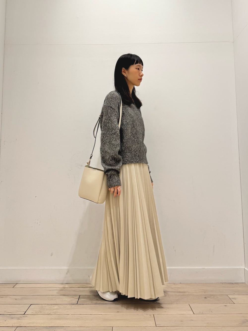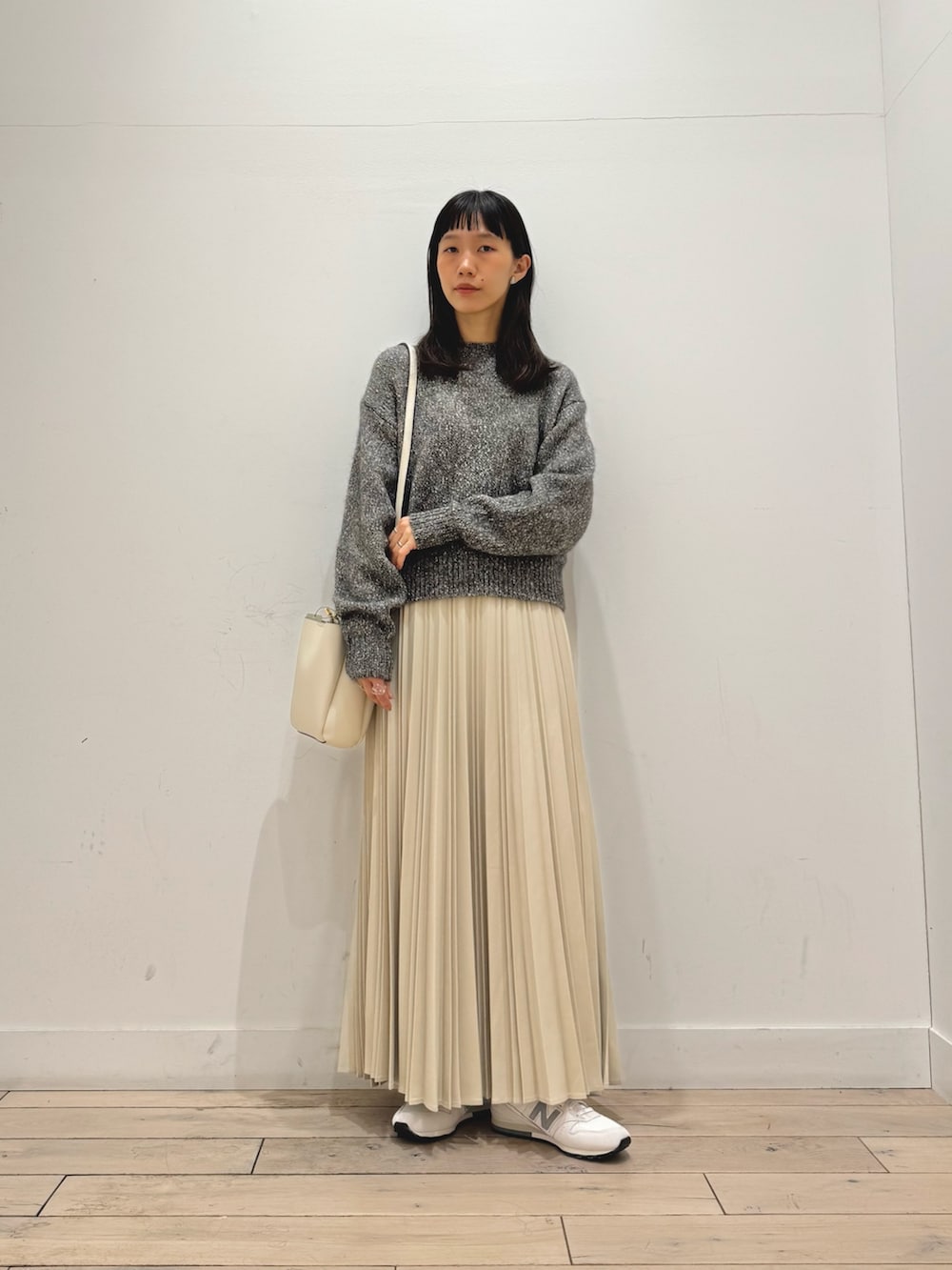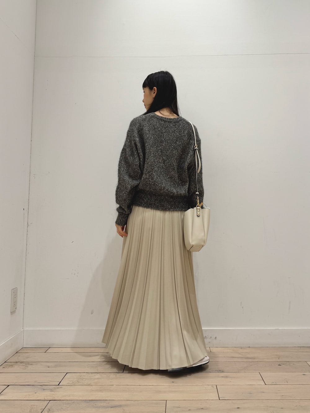 スカートは昨年も人気だったプリーツスカートで、よりプリーツが取れにくい生地になってます◎ウエストはオールゴムできれいに履けるのに楽ちんスカートです!