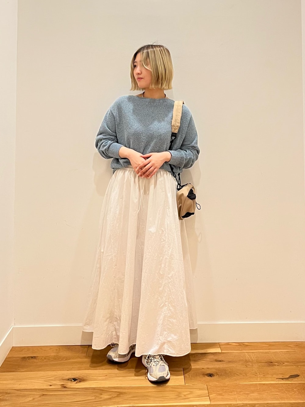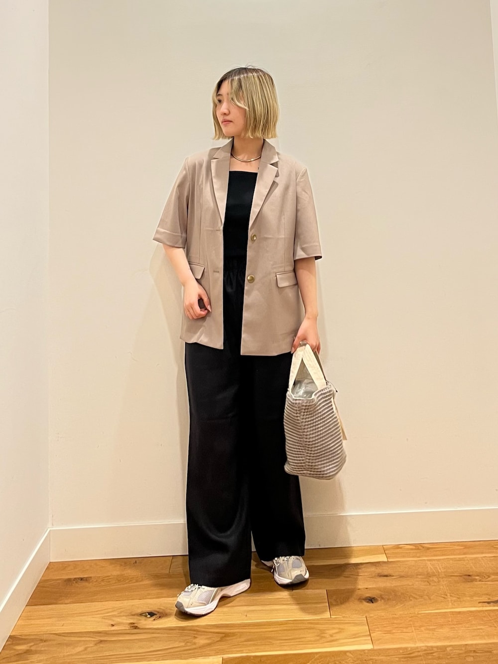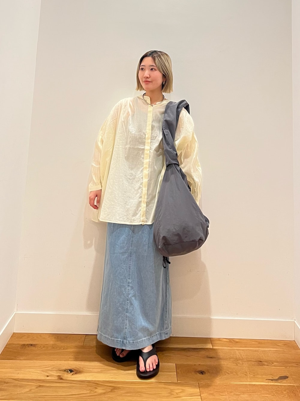 袖口と裾口にゴムを配した丸みのあるシルエットで、ドロップショルダーが抜け感のあるリラックススタイル◎