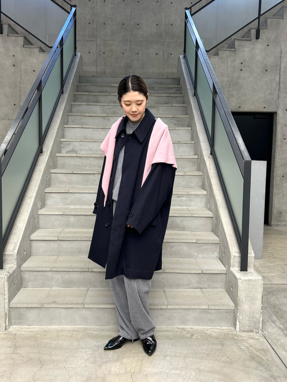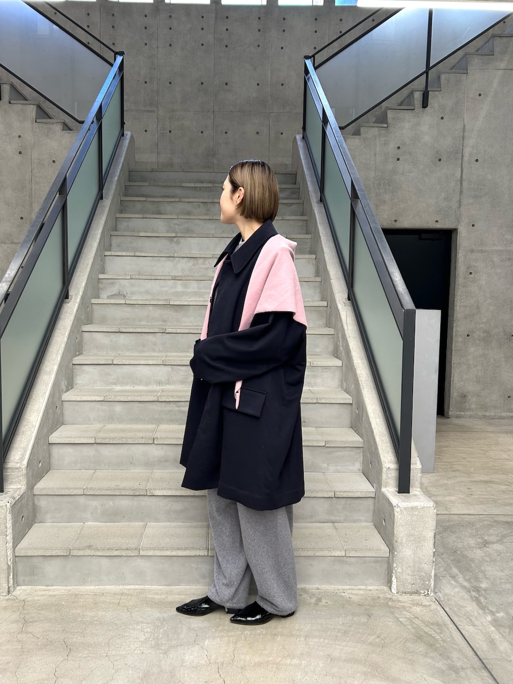 コートはゆるっと着れる身幅で丈が長すぎないのでスッキリとコーデに馴染みやすいシルエットです。