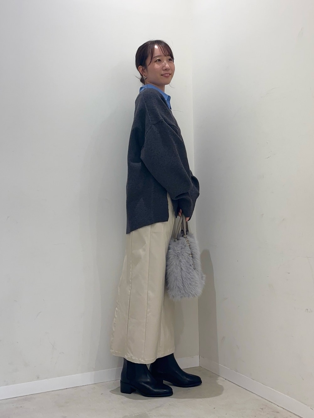 SENSE OF PLACE『洗濯可』サイドスリットVネックニット- 着用カラー:
