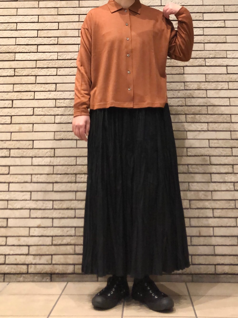 今回はロングスカートと合わせてお出かけスタイルです。