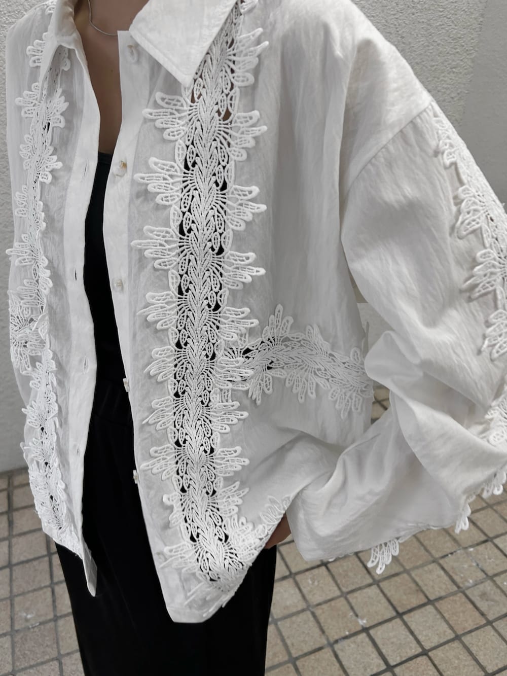 ヴィンテージライクなレースがポイントのシャツは、パッと羽織るだけでこなれ感が出るアイテムです◎