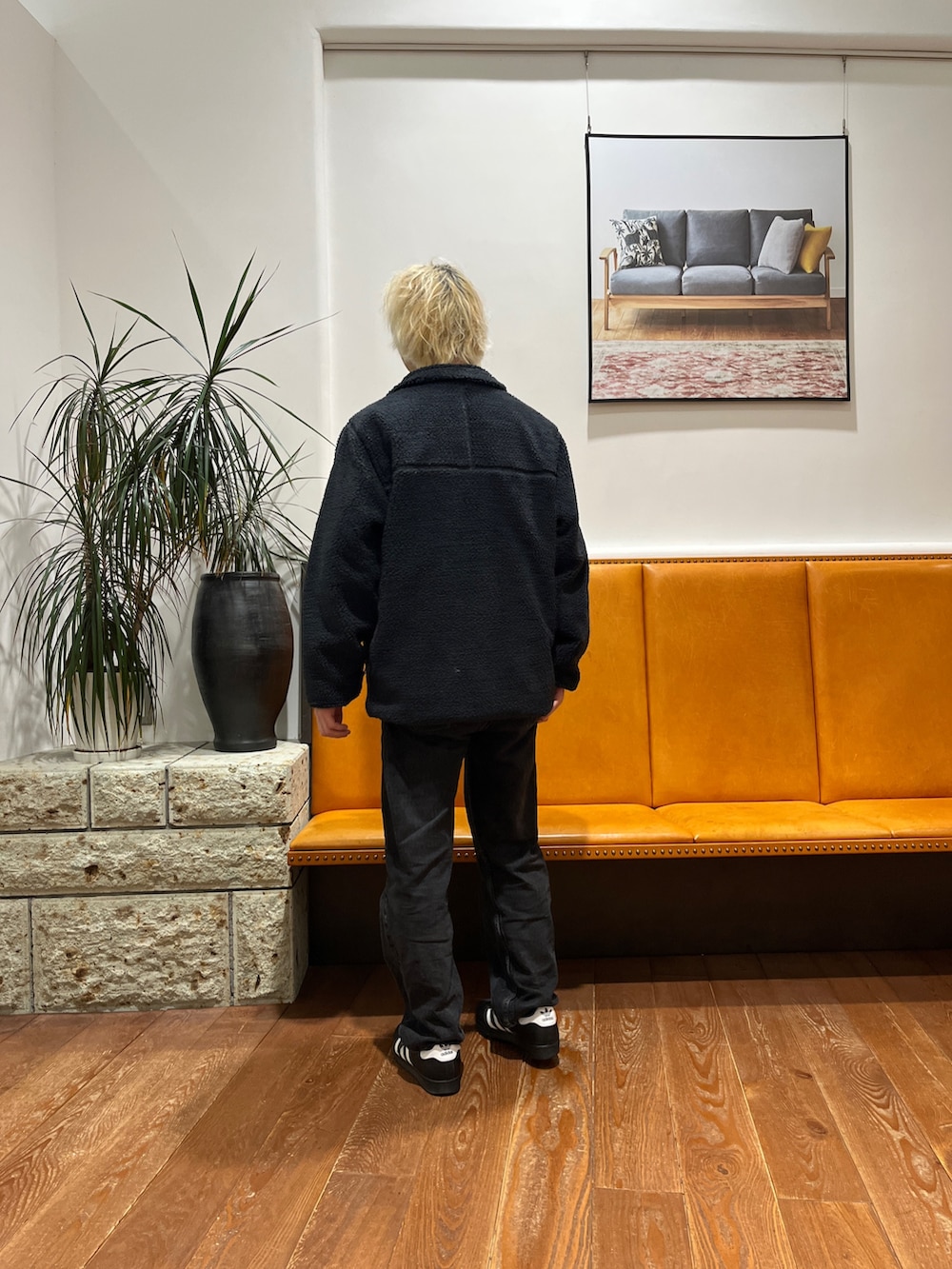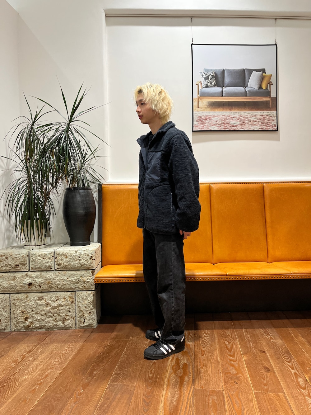 ブルゾンがブラックなので、パンツはグレーやネイビーチェックで合わせても可愛いです!
