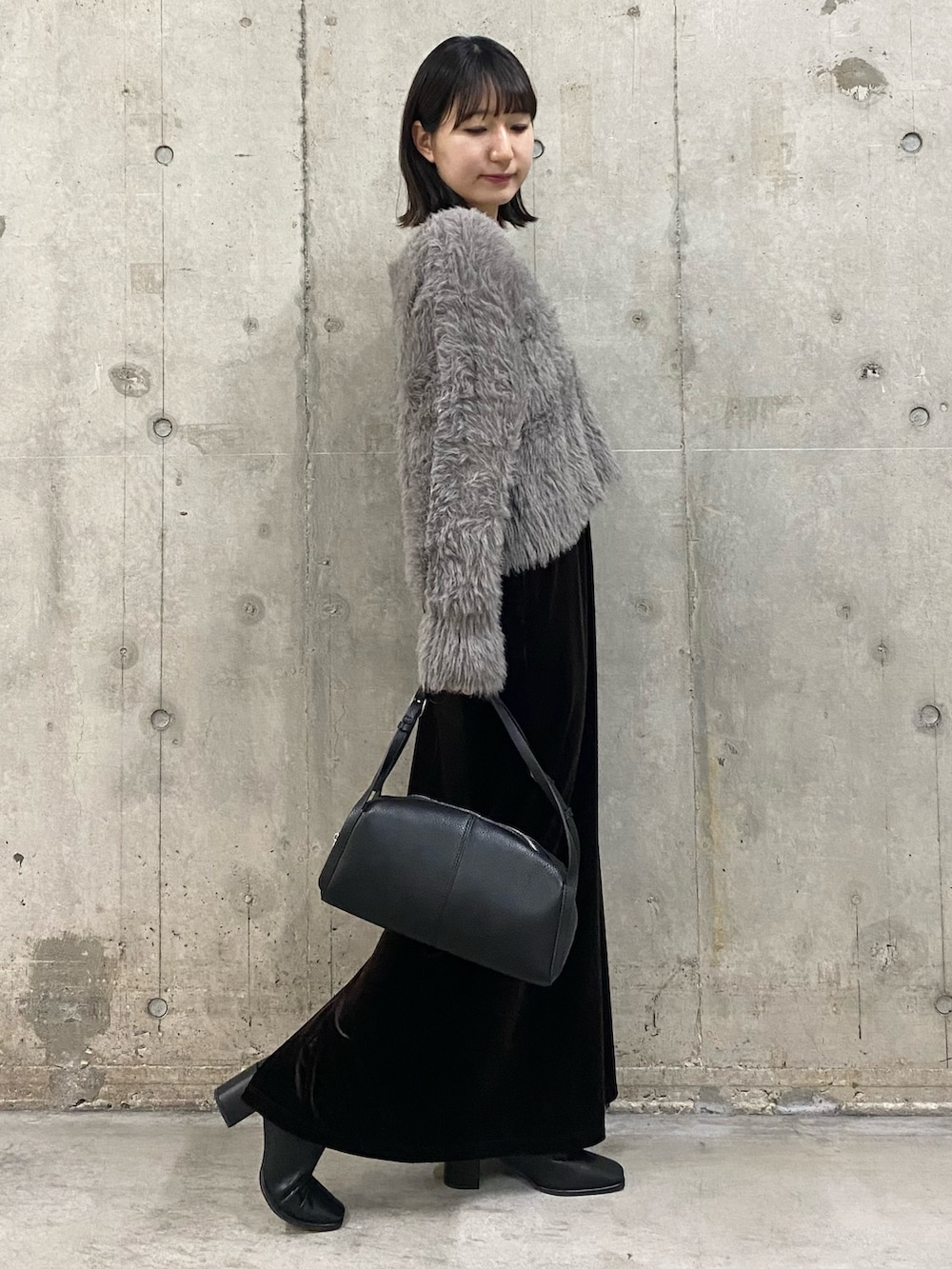 シャギーニットは程よいボリューム感でクロップド丈なのでスタイルアップ効果も◎