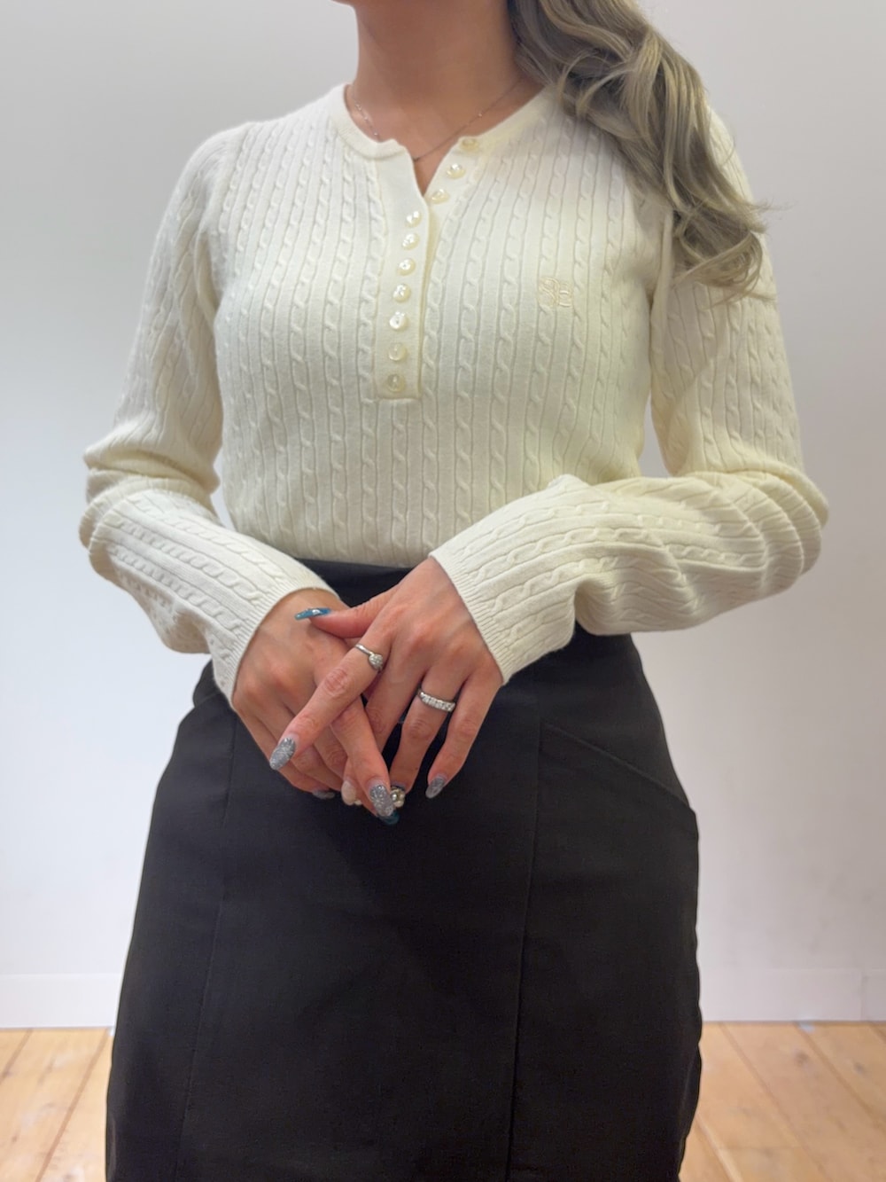 SENSE OF PLACE『洗濯可』シシュウヘンリーネックミニケーブルセーター- 着用カラー: