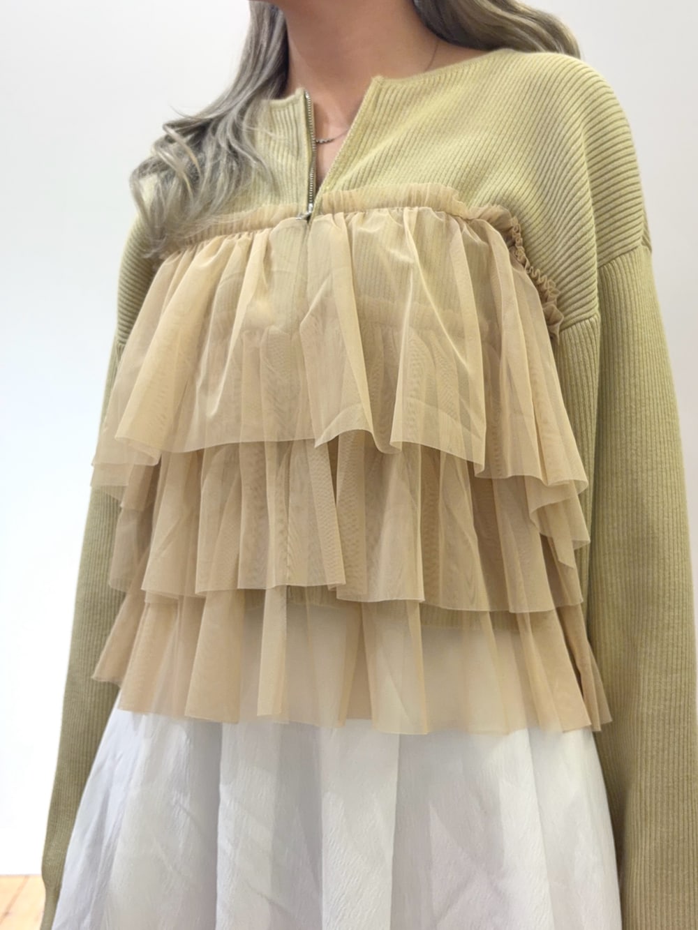 店頭でも人気のフリルジップニットと定番のバルーンスカートを合わせました♡