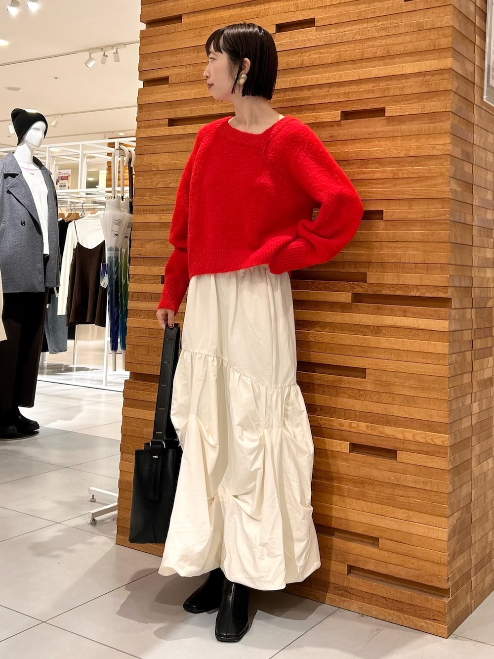 アシメニットは首回りをすっきりと見せてくれてあったかくおすすめです ♩