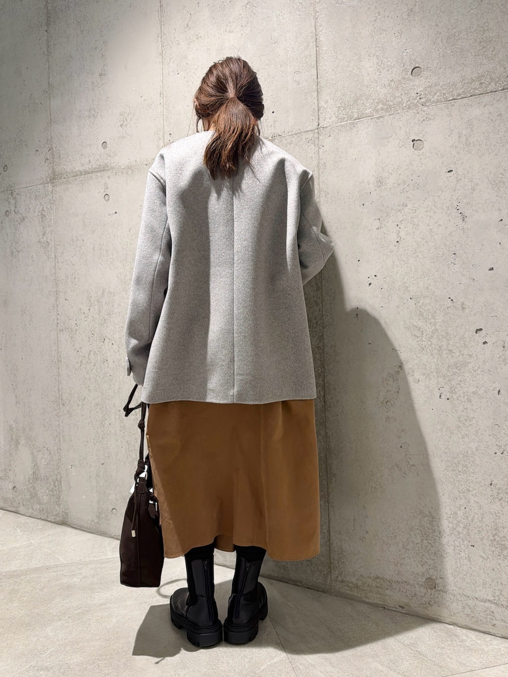 今回は、秋冬らしさのあるキャメルカラーのワンピースを合わせた、キレイめコーディネートです。