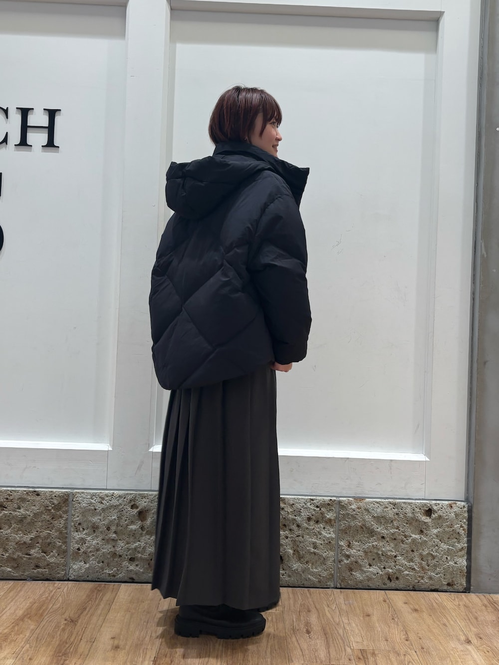後ろはヒップまで隠れる長さなのでダウンを着ながらも体型をカバーできるおすすめのアイテムですよ◎
