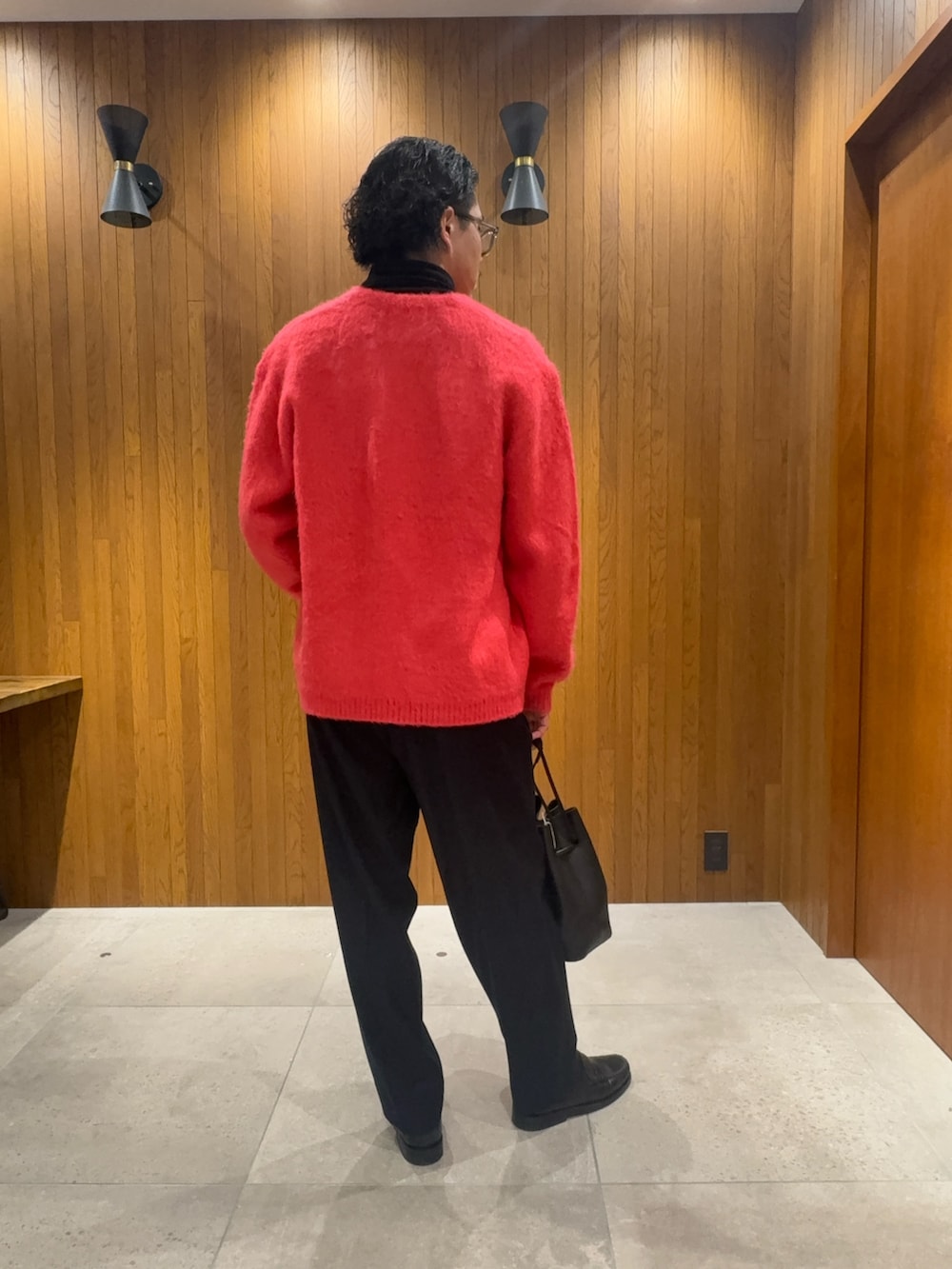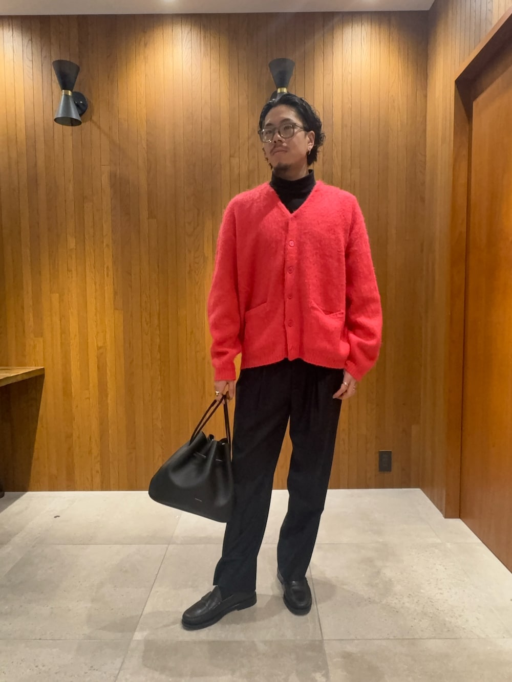 バッグには Hender Scheme のレザーバッグをセレクト👜
