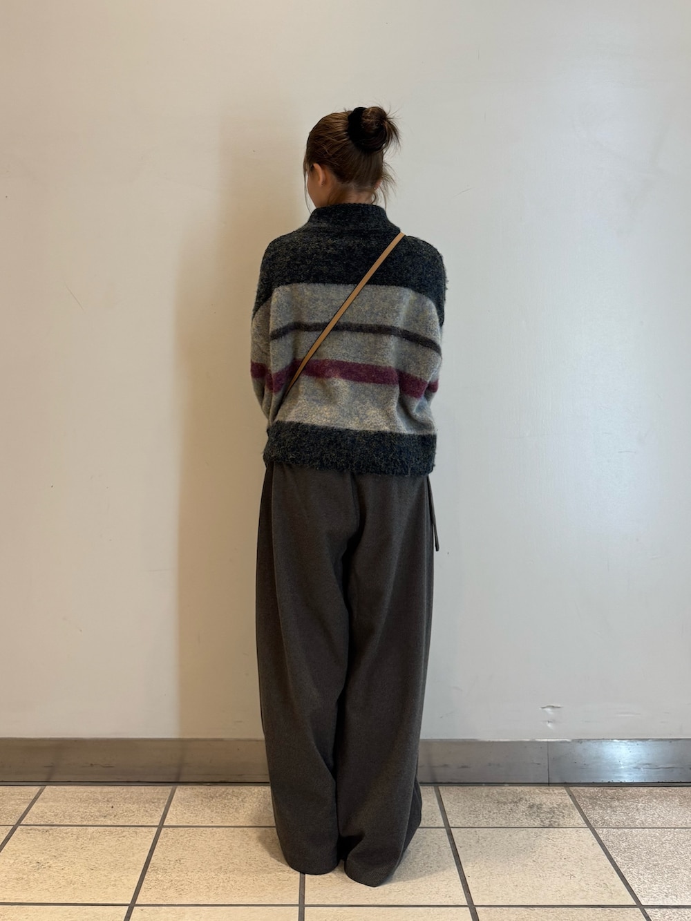 ウールライクイージーパンツは着心地が良く、低身長の私では少し長いのでウエストがゴムになっているためひとつ曲げていただくと良い長さになります!!