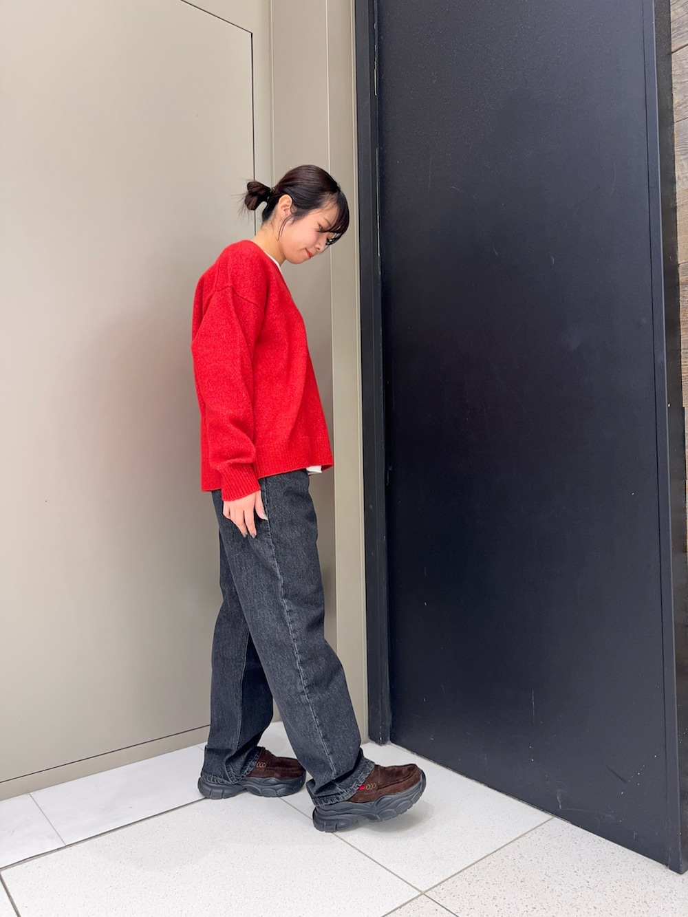 中のコットンラウンドヘムカットソーはSサイズにしたのでニットから少しだけ見えています👀
