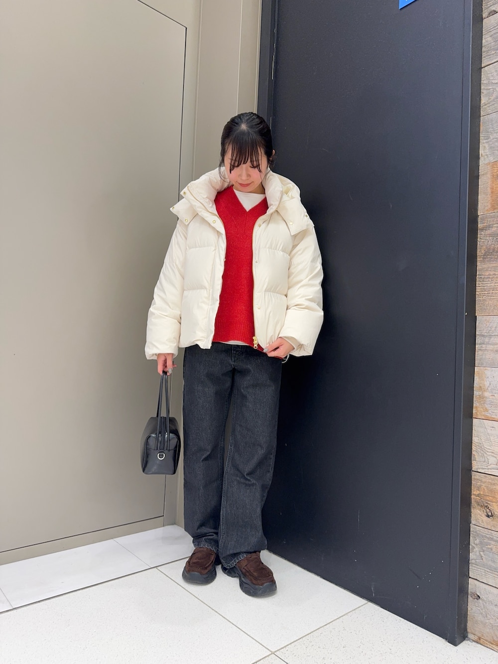 ダウンジャケットは短めの丈なのでボトムスがしっかり見えます👀