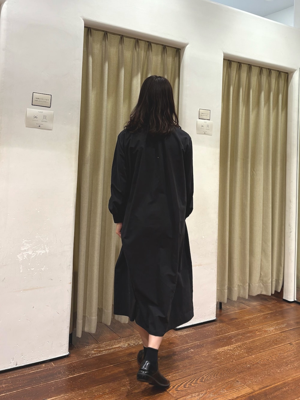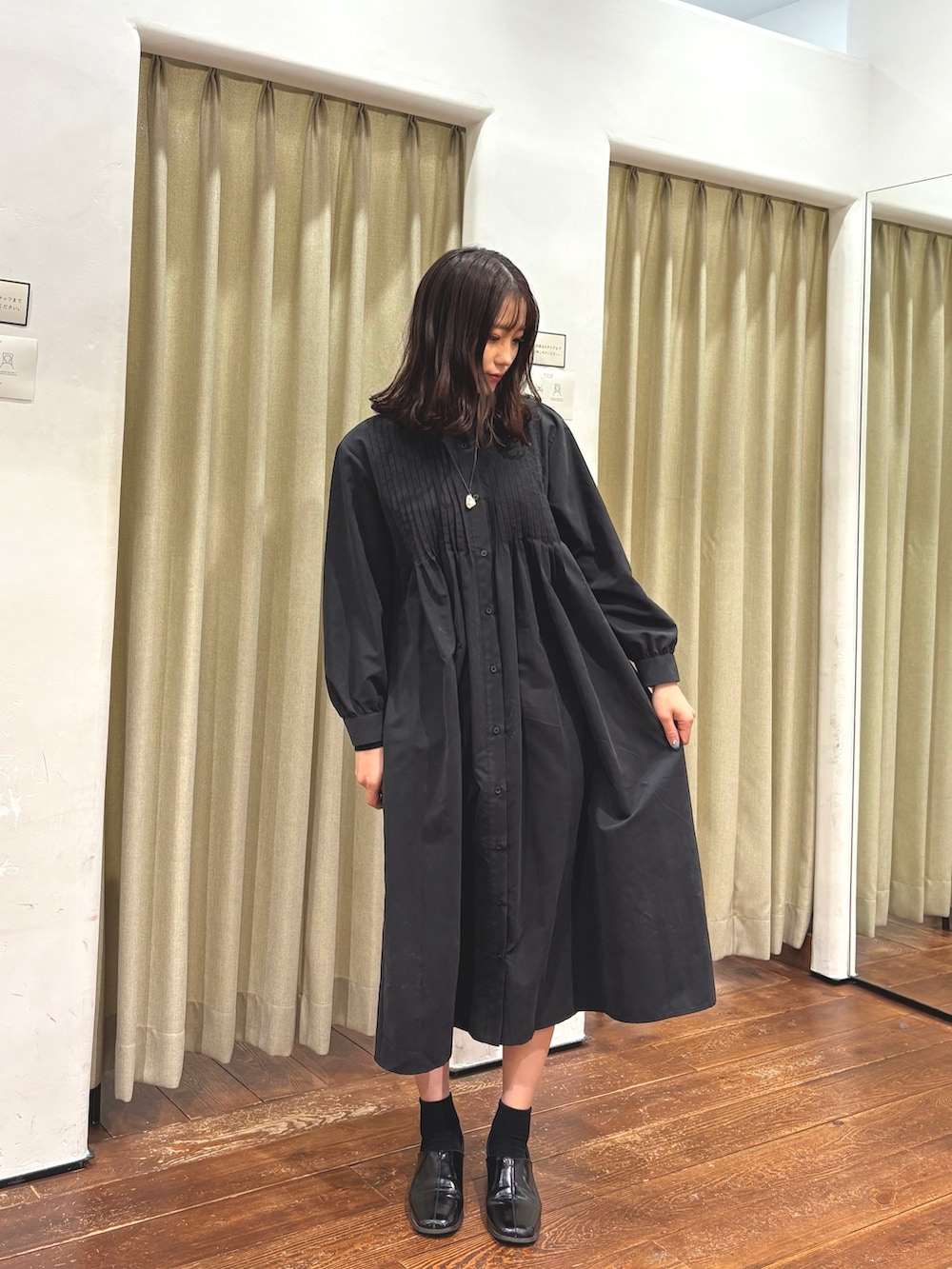 ワンピースは首元がすっきりしており、大人っぽさもある一枚です。タートルネックとの重ね着でも可愛いです。