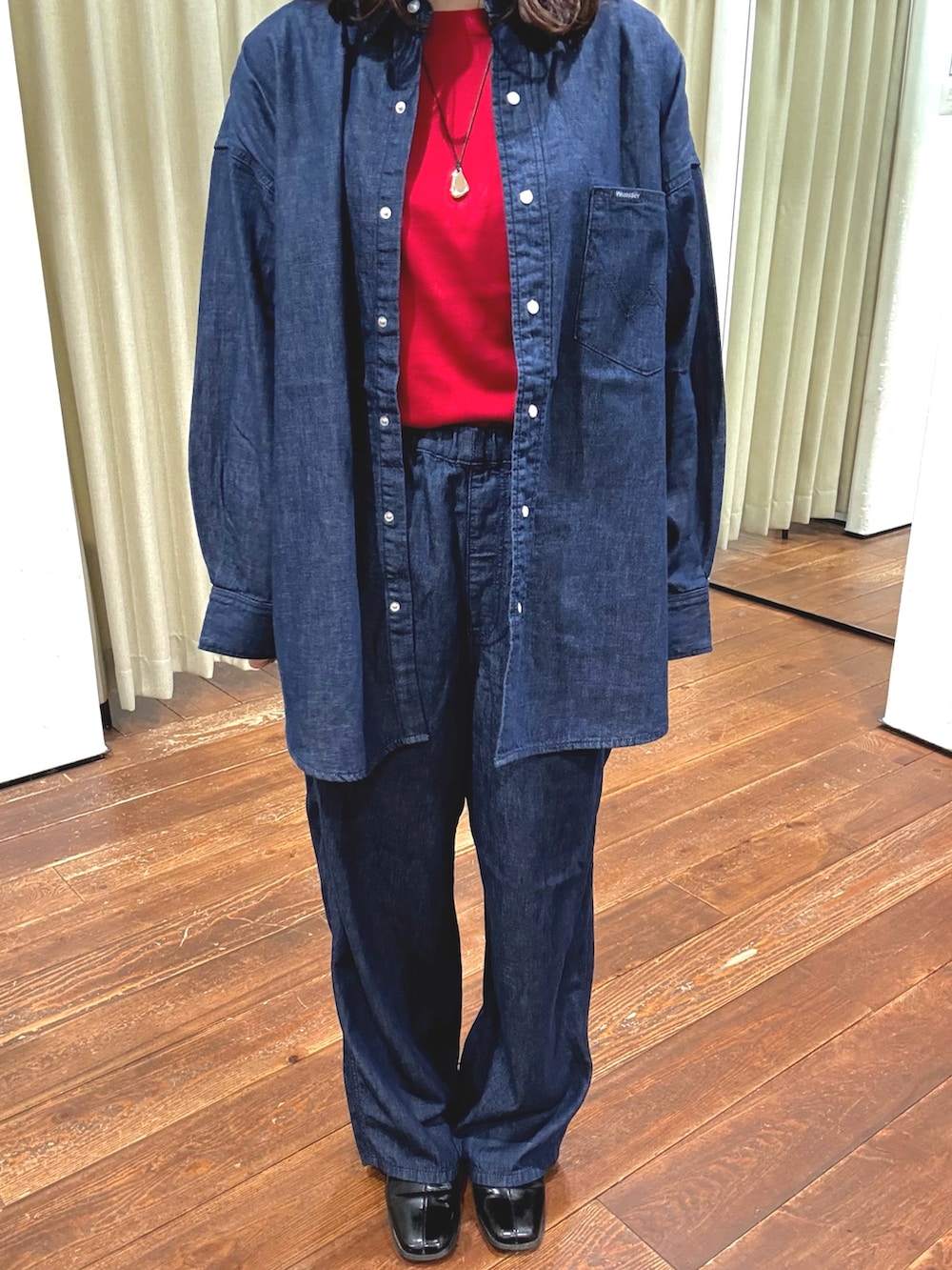 昨年も人気だったEKAL×Wranglerのデニムシャツとパンツです。どちらもワイドシルエットでゆったり着ていただけます。セットアップでも、バラバラでもすごく可愛いです。