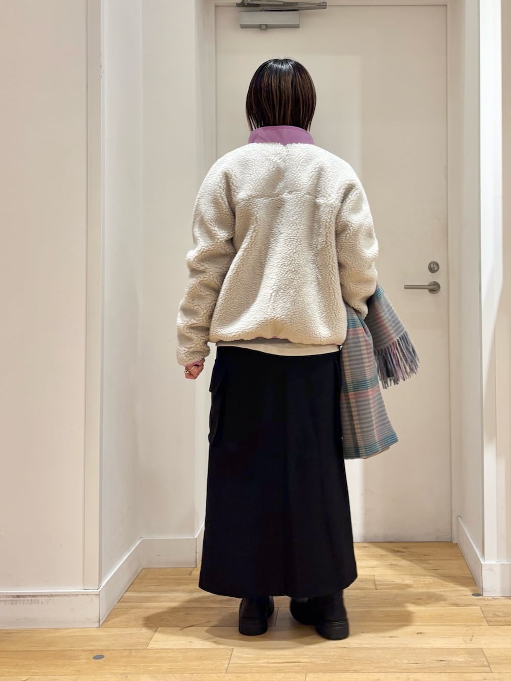 メンズライクなアイテムなのでスカートを合わせて女性らしさもプラスしてみました♪
