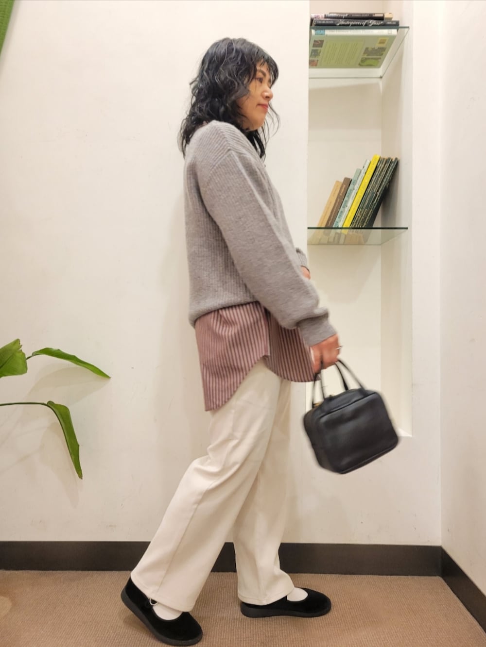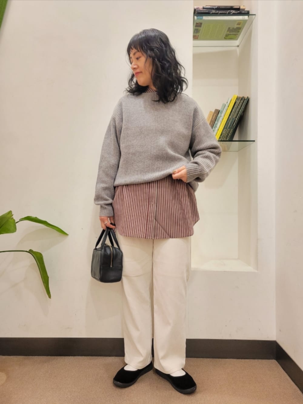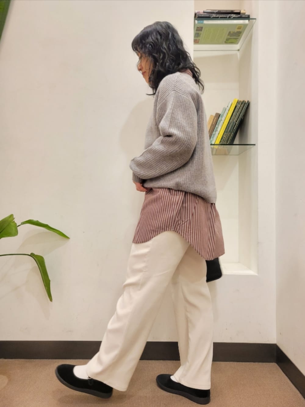 シャツはゆったりで着丈長めで