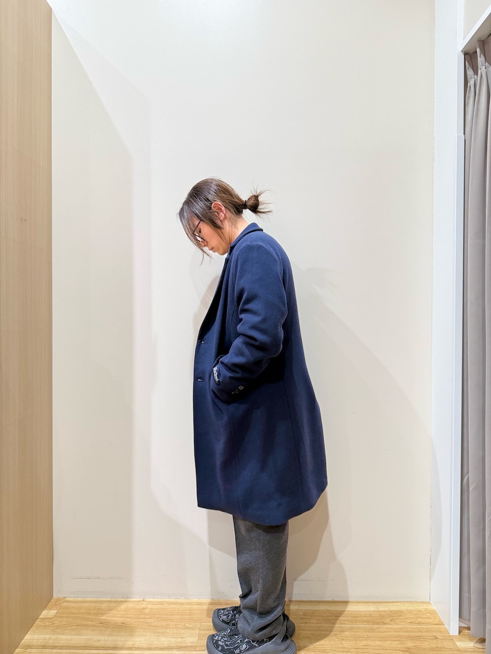 ウールブレンドチェスターに、表情あるツイードライクニットを合わせて。