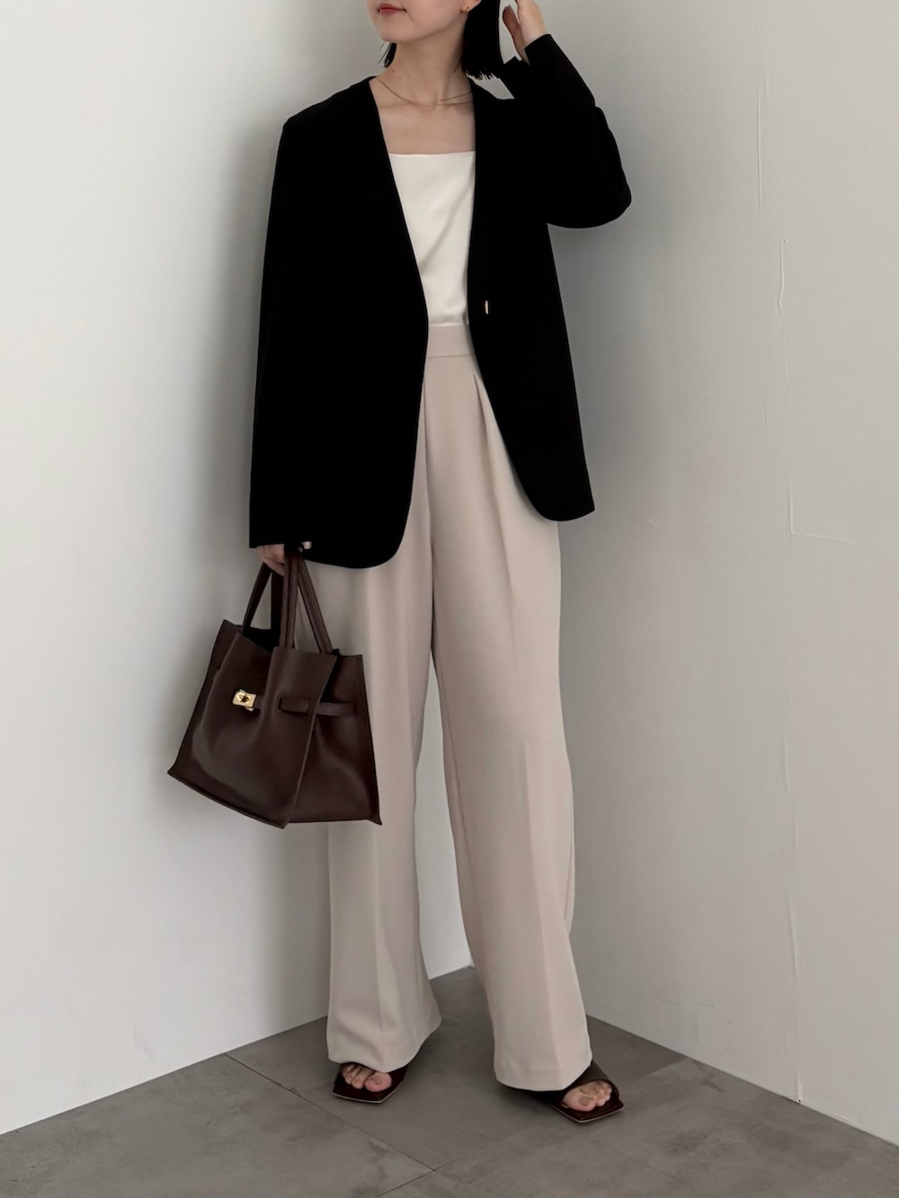ジャケットは、インナーを選ばないミニマルなデザインがポイント!