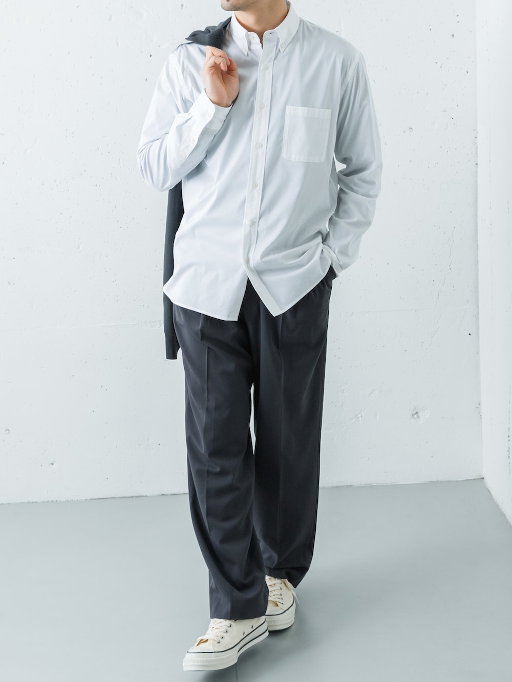 パンツはややゆとりがあるスラックスデザインで履き心地やわらかで最高です。
