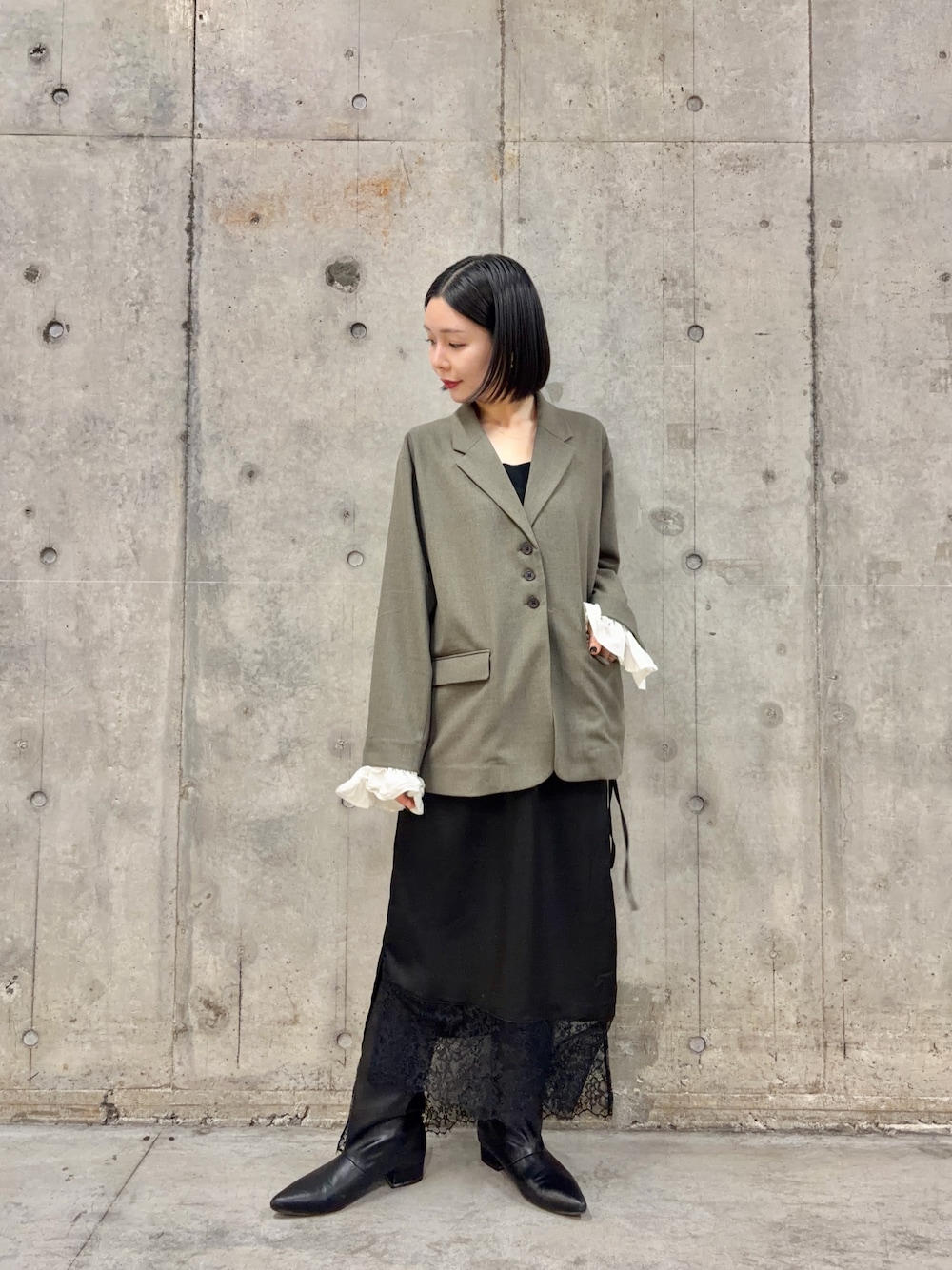 SENSE OF PLACEスクエアトウセンターシームストレッチブーツ- 着用カラー: