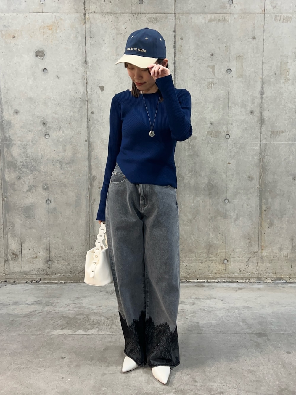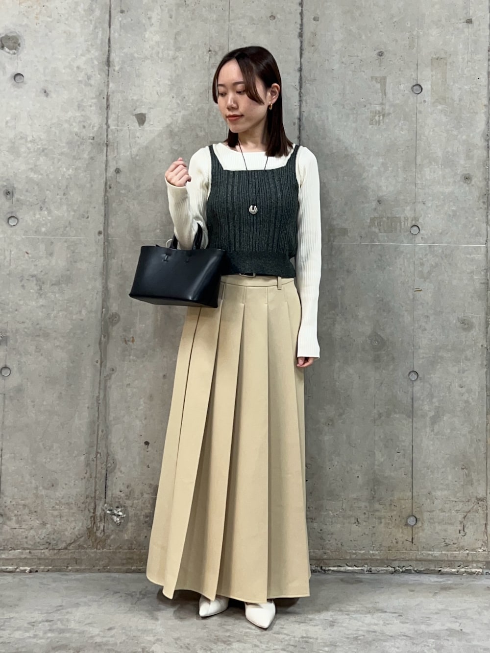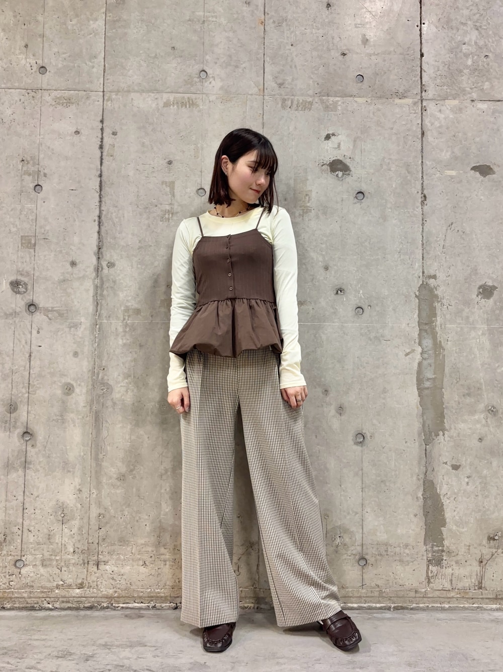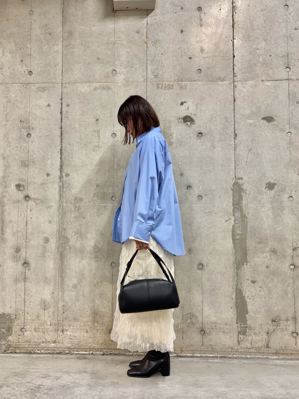 レイヤードシャツにラウンドネックのインナーを合わせ、キレイめ春コーデです!