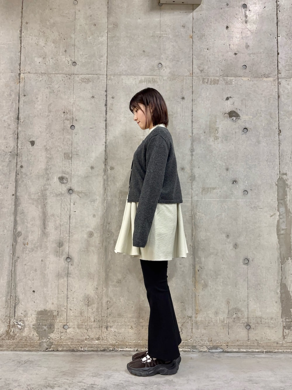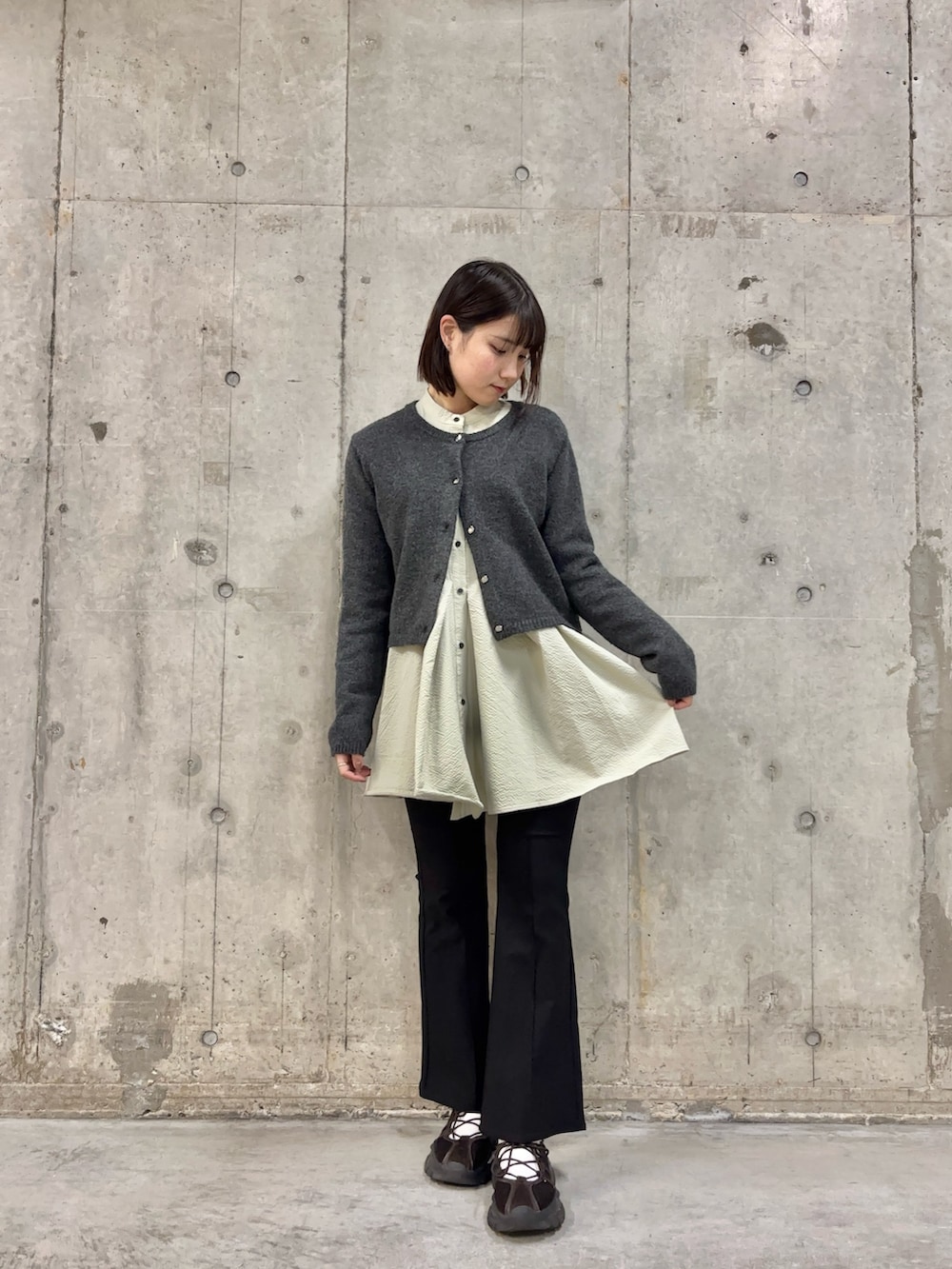 カーディガンもシャツワンピースもフレアパンツも冬にも春にも使えるアイテムで、一つ持っておいて🙆♀️