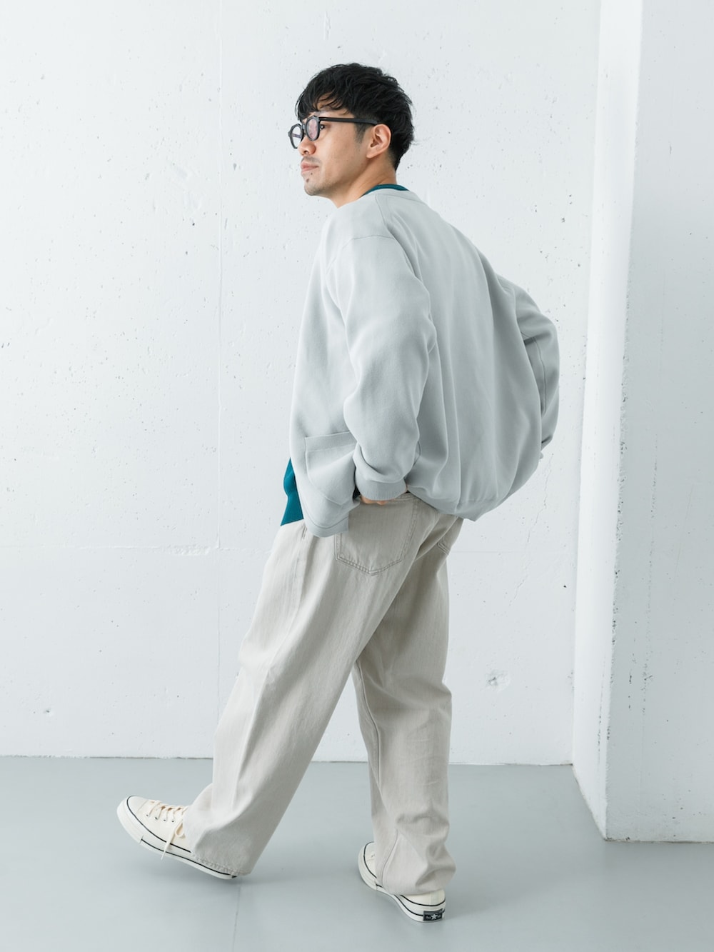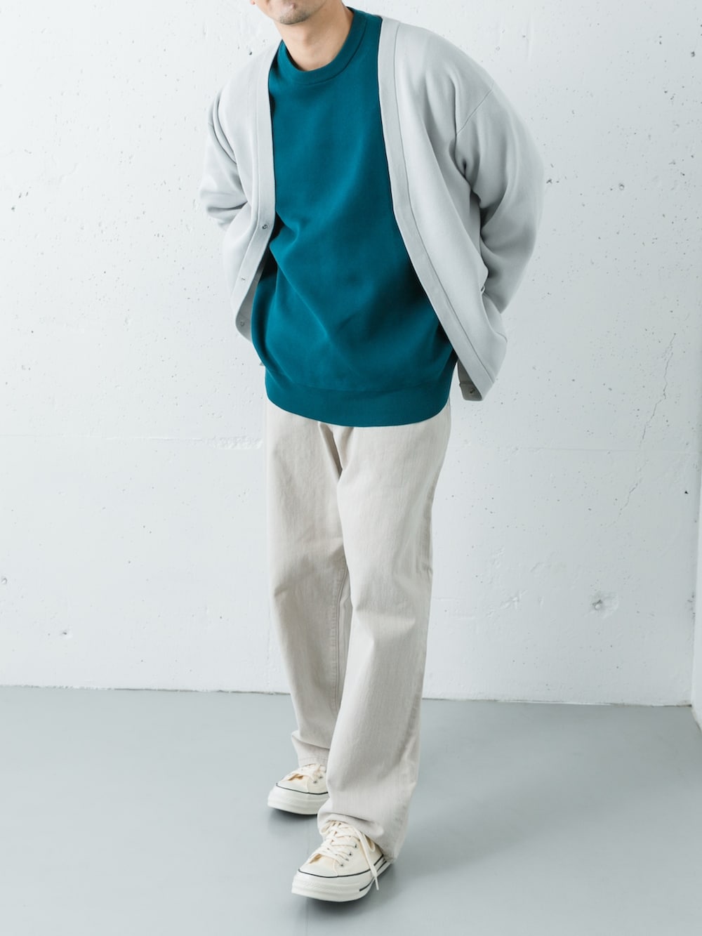 元々程よいゆとりがあるシルエットで今回はLサイズでゆるい感じで合わせました。