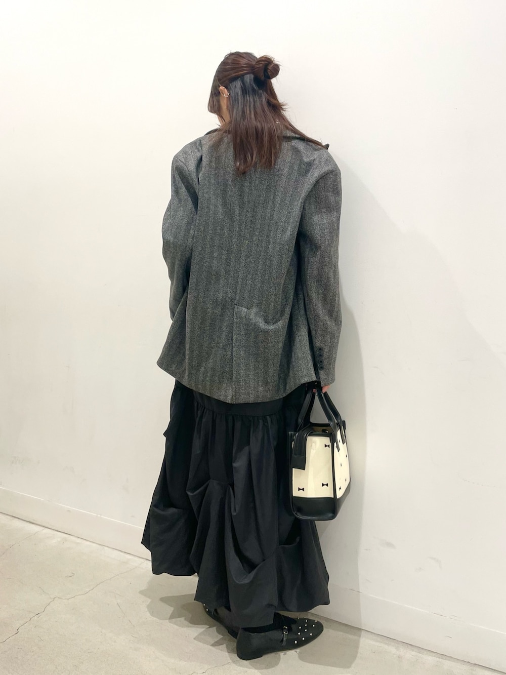 テーラードジャケットとボリュームのあるスカートの合わせがとっても可愛い😍