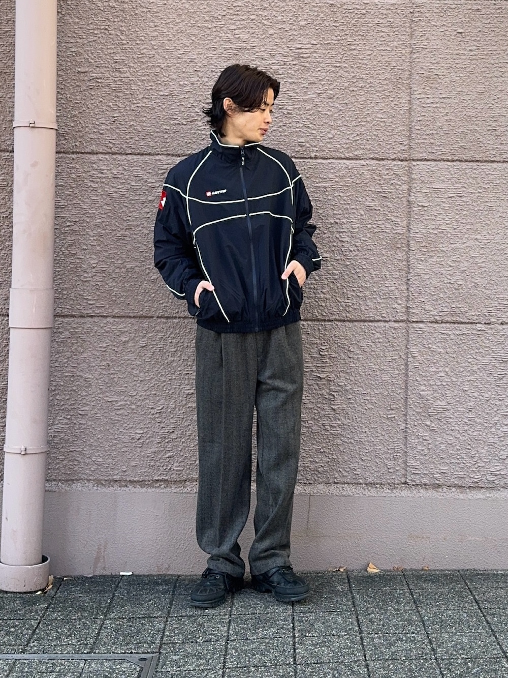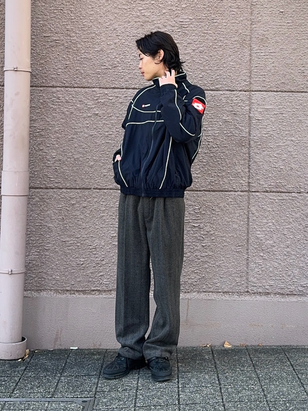 今回のコーディネートはlottoのナイロンジャケットにスラックスを合わせました!!ジャケットは中に着込めば今の季節でも、暖かくなれば一枚で羽織っていただけて、長い間使えます!
