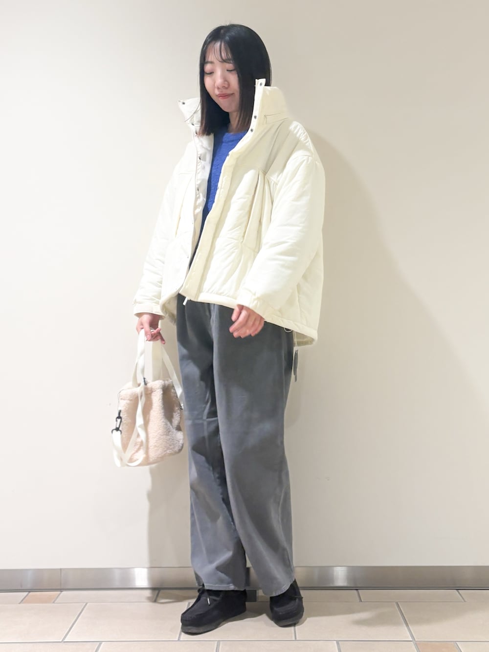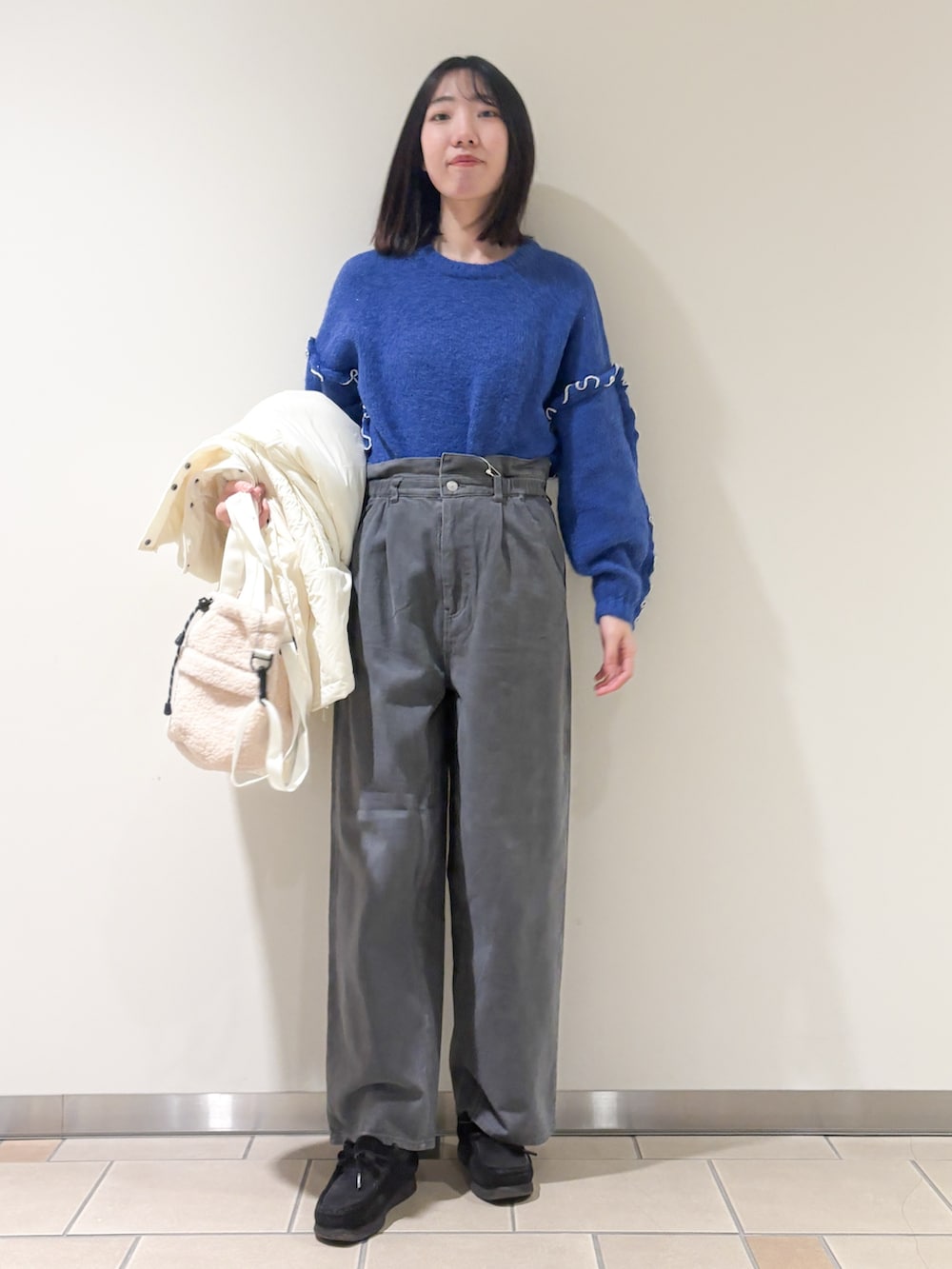 中のニットはふわふわで軽いので楽ちんです!鮮やかなブルーがつい毎日手に取りたくなりそうです^^