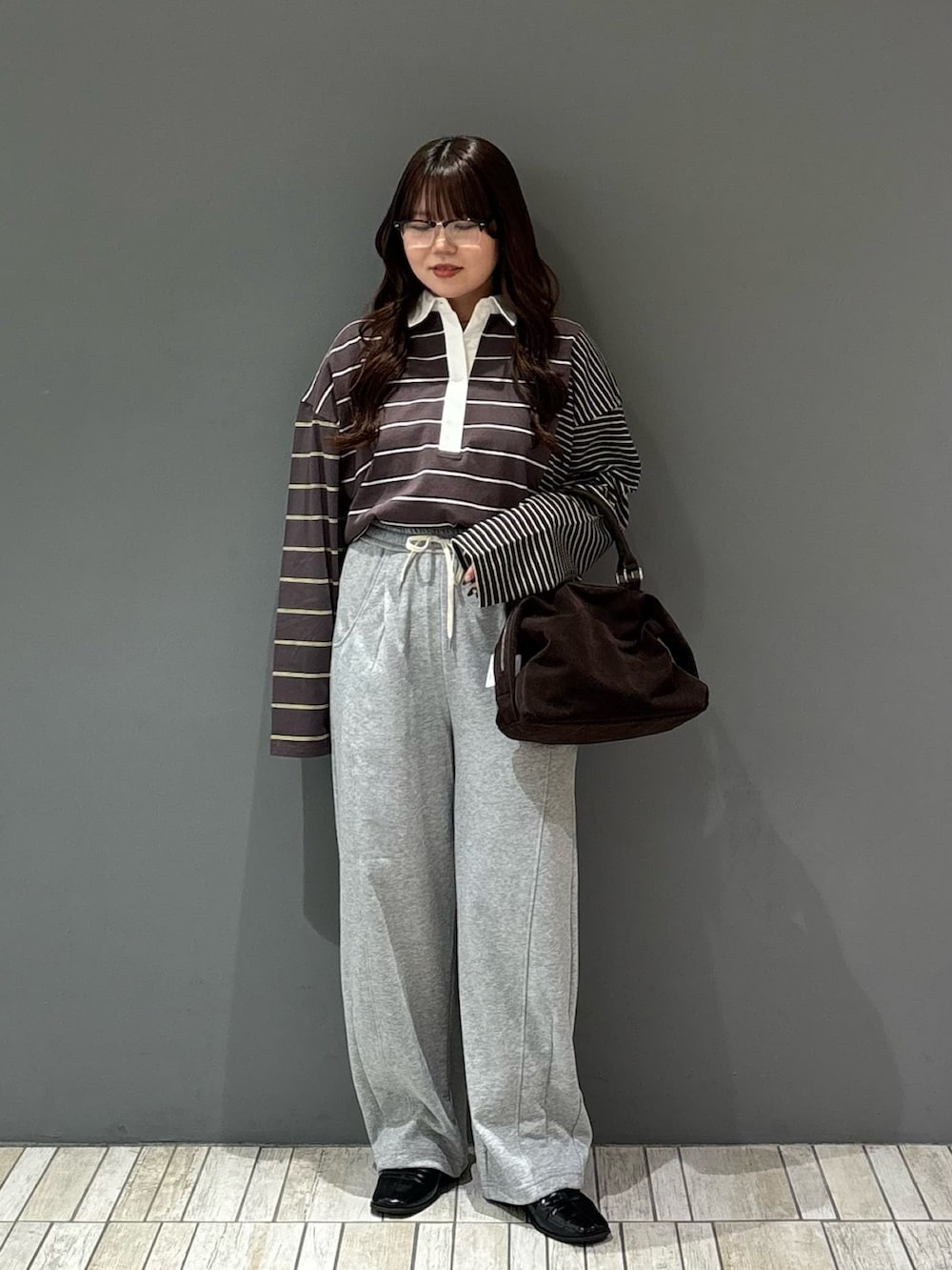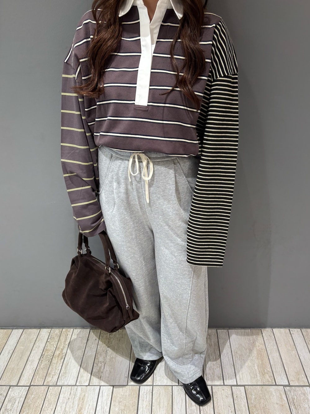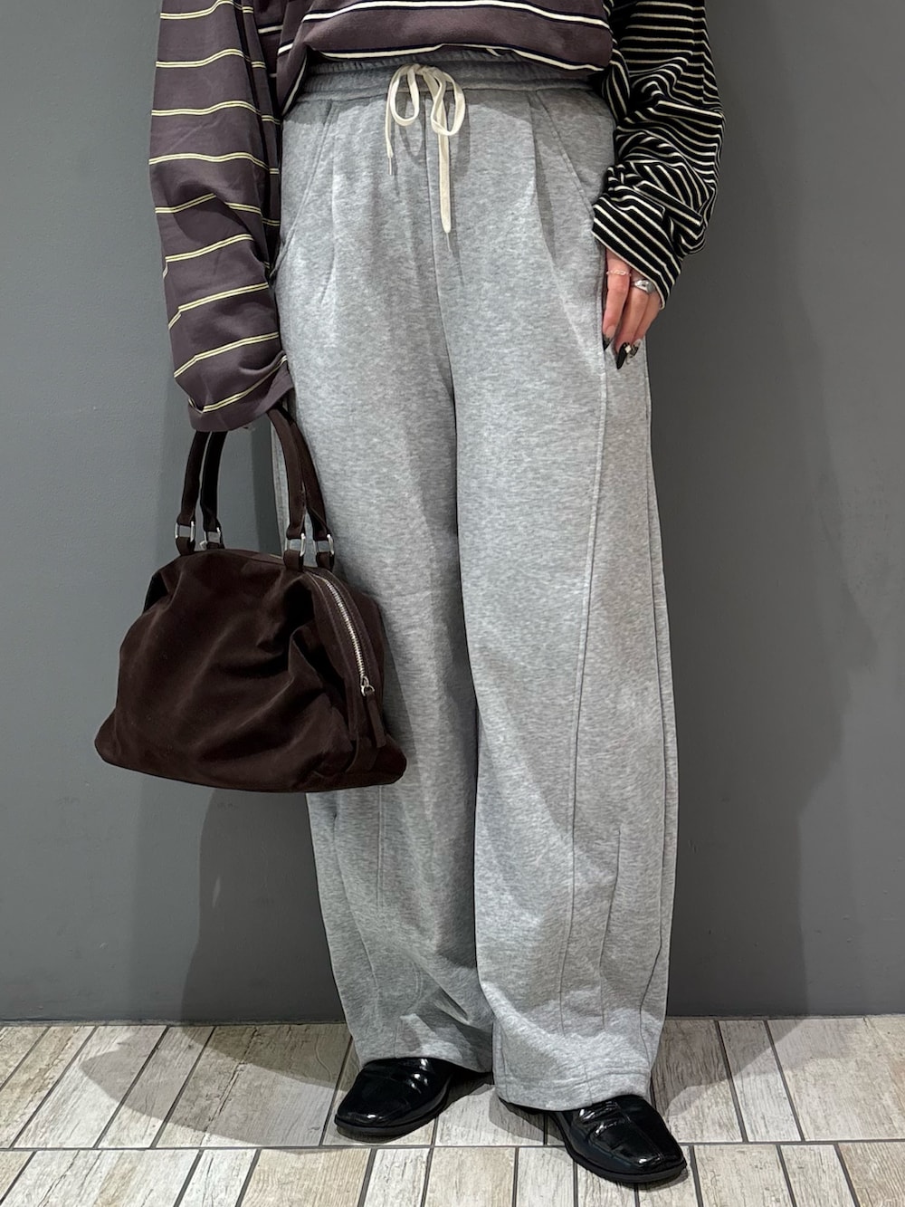 ・オーバーサイズのトップス×スウェットパンツでラフ過ぎないようにバッグとシューズはカチッとした大人っぽいものをチョイス.ᐟ.ᐟ.ᐟ