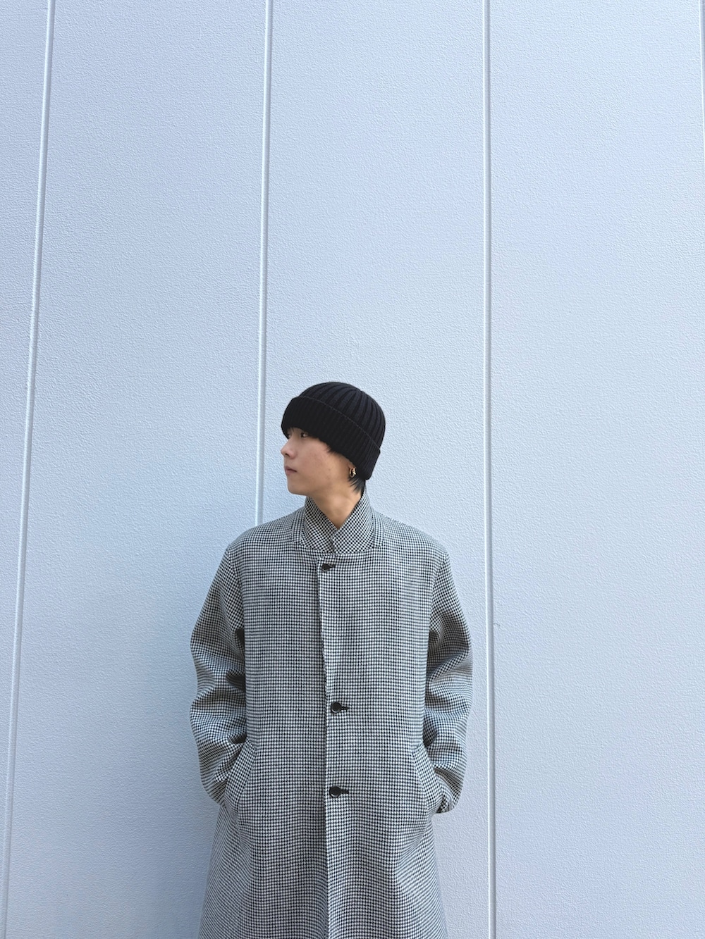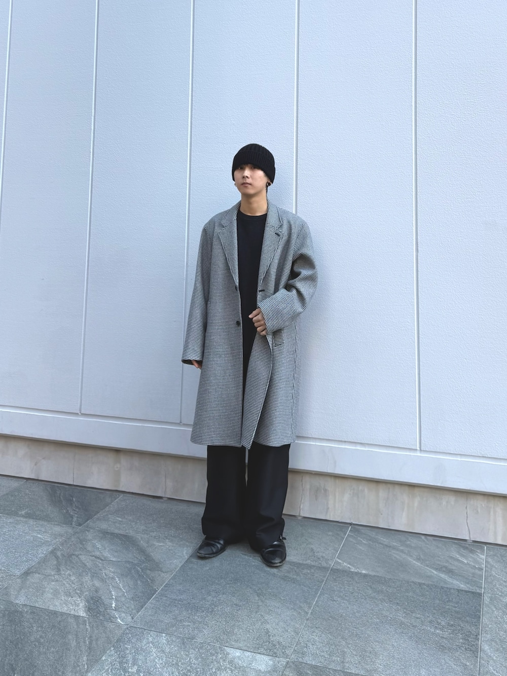 個人的に襟を立てて、かっちりモードな格好も