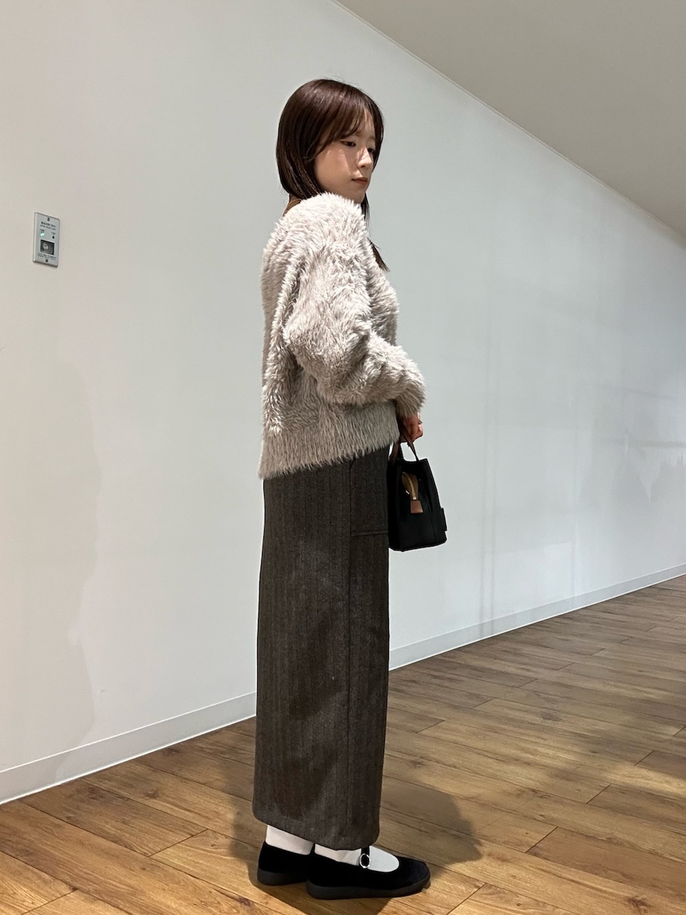 シャギーニットにタイトスカートを合わせてより大人女子な印象に😌💞