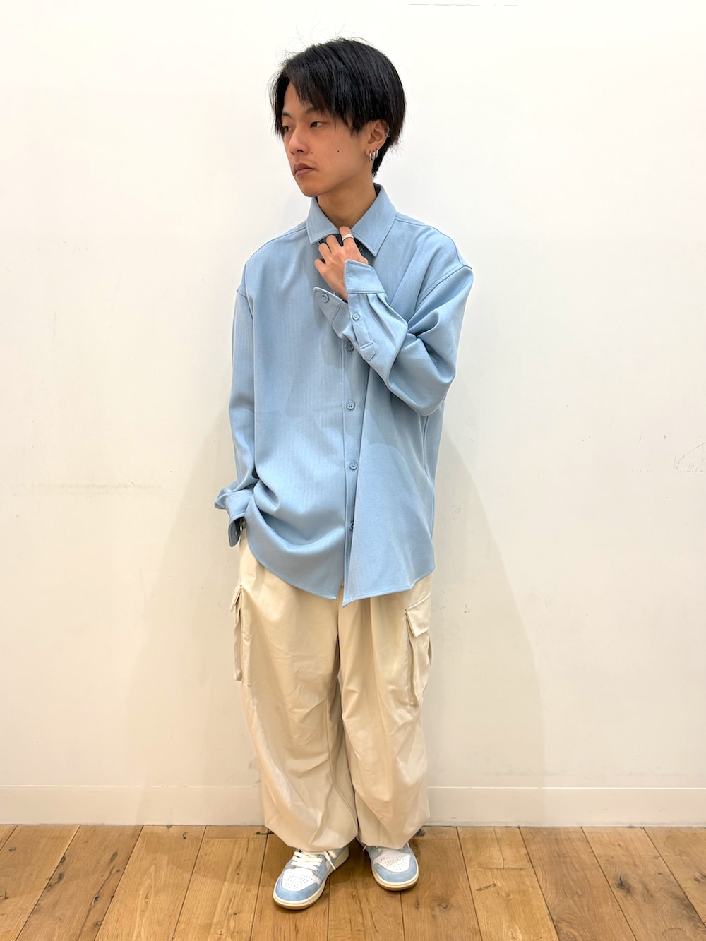 シャツとカーゴパンツなので