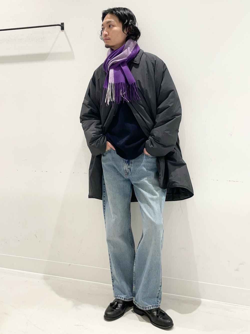 差し色のマフラーが絶妙で◎です!